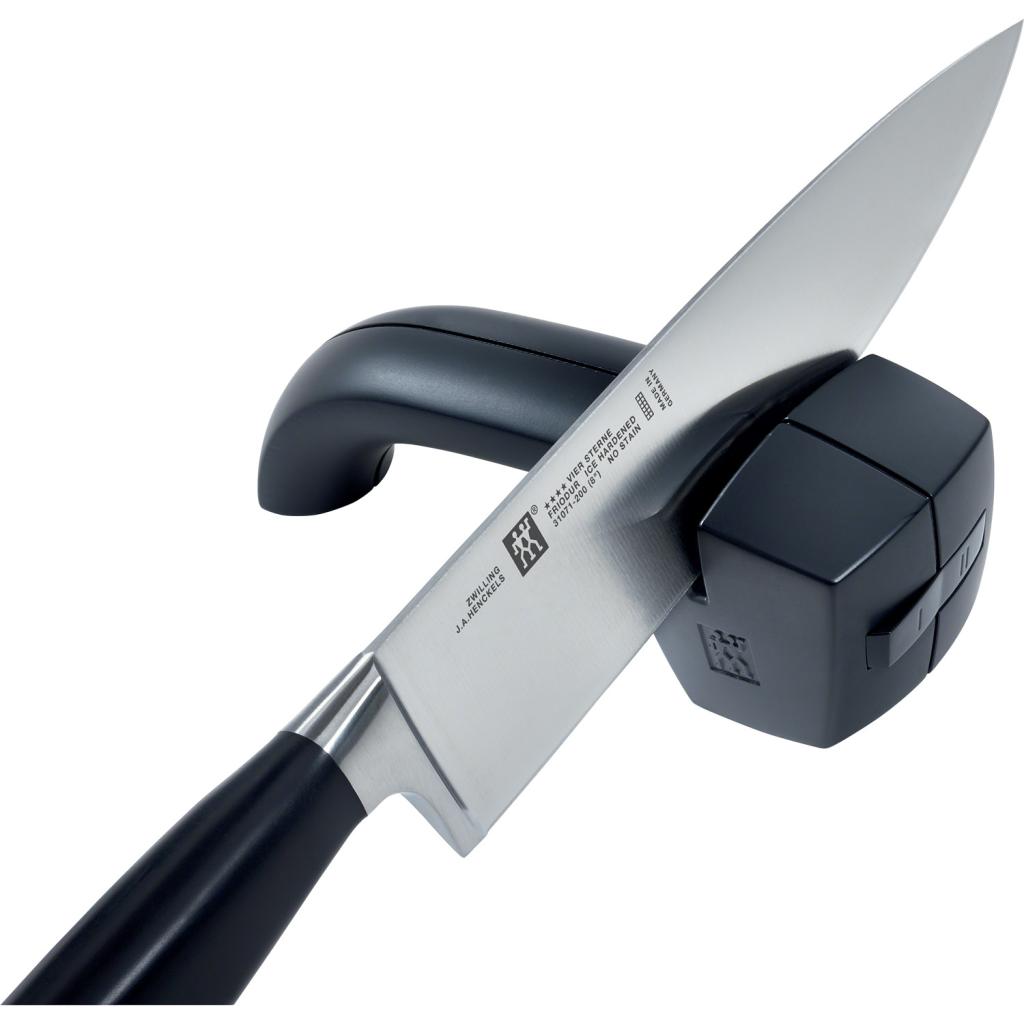Brúska na nože ZWILLING Sharp Pro je jednoduchá na použitie, brúsenie s ňou je jednoduché a bezpečné. Nesprávne použitie brúsky je takmer nemožné. Vyrobená z kvalitného čierneho plastu s oceľovým a keramickým brúsnym kotúčom, odolným proti poškodeniu. Nie je vhodná pre ázijské ani zúbkované nože!