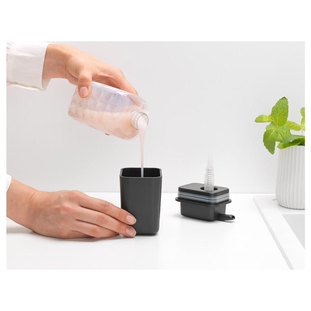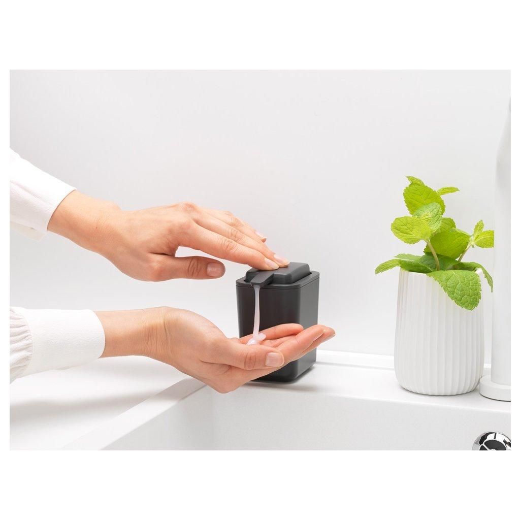 Dávkovač mydla a saponátu Brabantia SinkSide v kvalitnom spracovaní so zárukou 5 rokov. Veľký otvor na dopĺňanie a protišmyková základňa. Do dávkovača sa zmestí 200 ml umývacieho prostriedku na umývanie riadu alebo mydla na ruky a dokonale sa hodí do organizéra Brabantia Sink Organizer. Nádherný príklad praktických návrhov spoločnosti Brabantia.