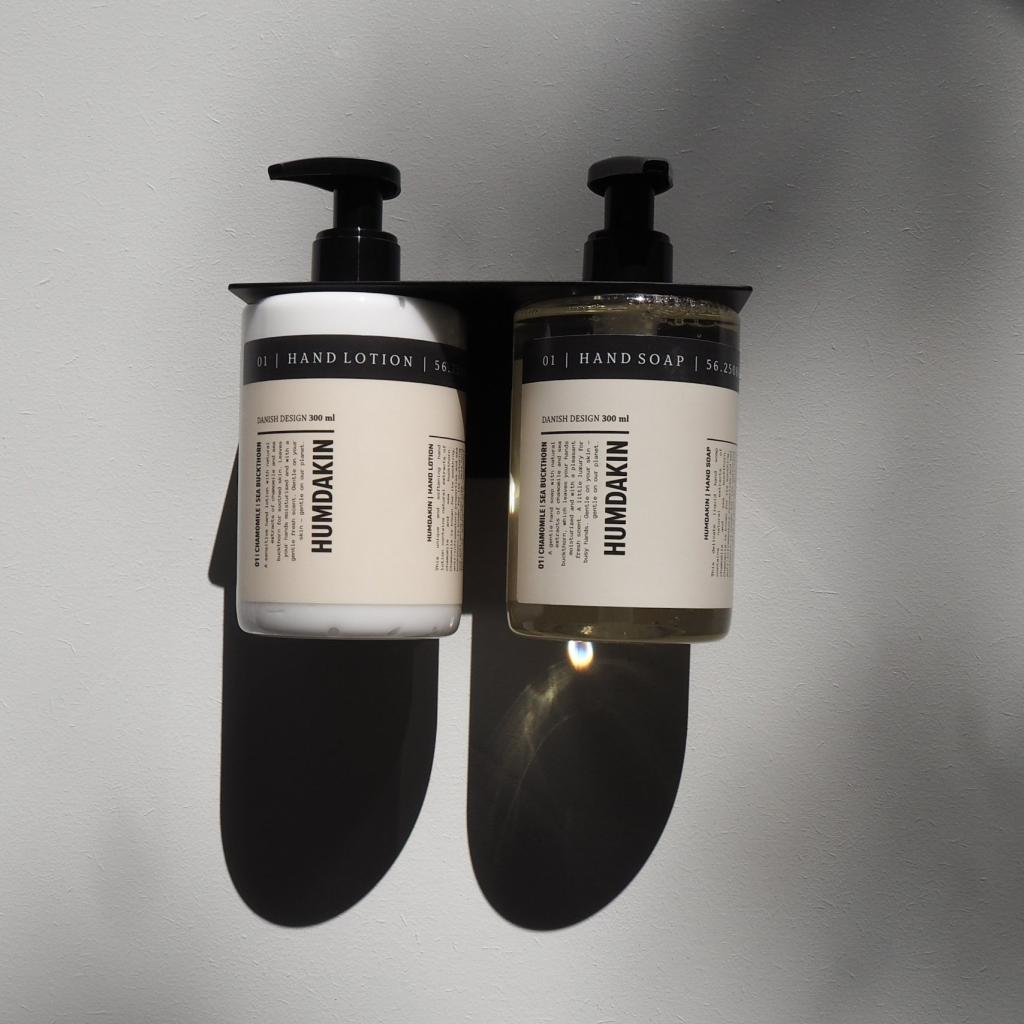 - dvojitý nástenný držiak na tekuté umývacie prostriedky, mydlá a dezinfekcia Humdakin s objemom 300 ml