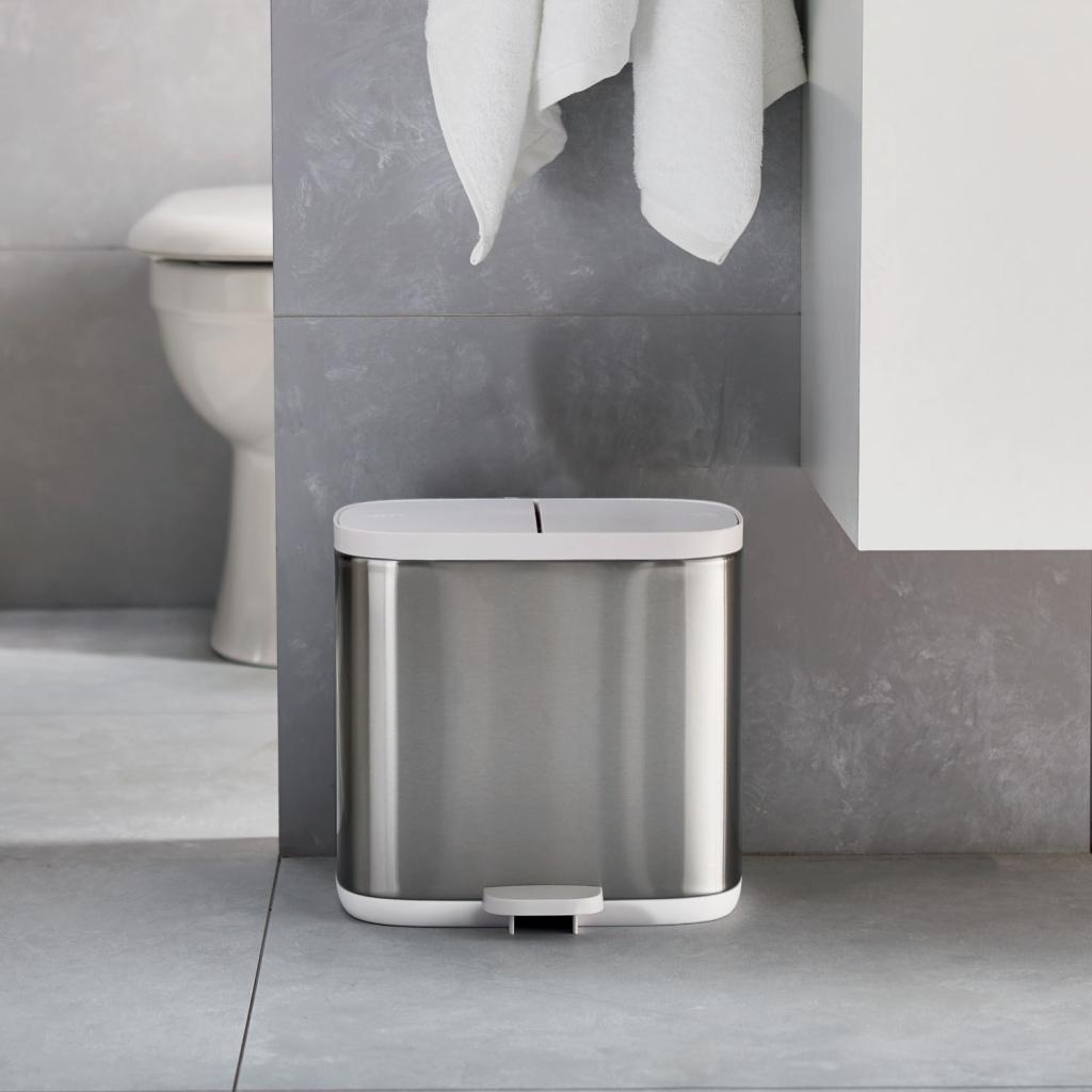 Kúpeľňový odpadkový kôš SPLIT, dvojitý, z nehrdzavejúcej ocele, Joseph Joseph