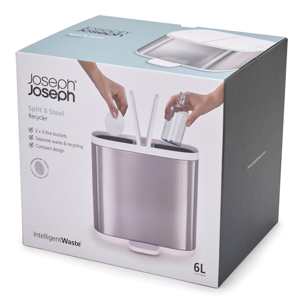 V kúpeľni sa na recyklovanie často zabúda. Spoločnosť Joseph Joseph sa to rozhodla napraviť. Kôš na triedený odpad Split má dve nádoby a otvára sa pomocou pedála. Celkový objem hlavného koša je 6 l, plášť je vyrobený z nehrdzavejúcej ocele.