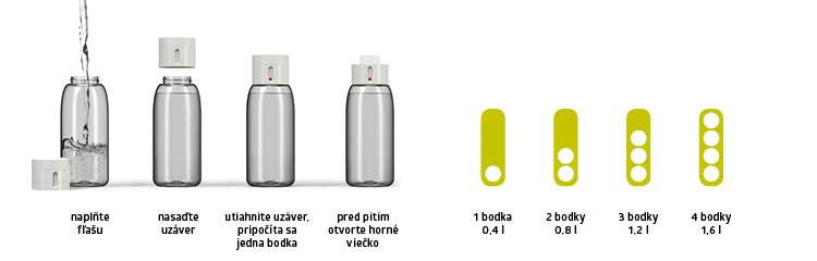 Koučom vášho pitného režimu sa môže stať fľaša Dot™ s počítadlom. Pre zdravý životný štýl je podstatný dostatočný prísun tekutín, a práve preto dizajnéri prichádzajú s fľašou, ktorá bude sledovať váš pitný režim. Pri každom ďalšom doplnení a pritiahnutí viečka pribudne jedna bodka – na konci dňa tak budete mať dokonalý prehľad o tom, koľko ste vypili.