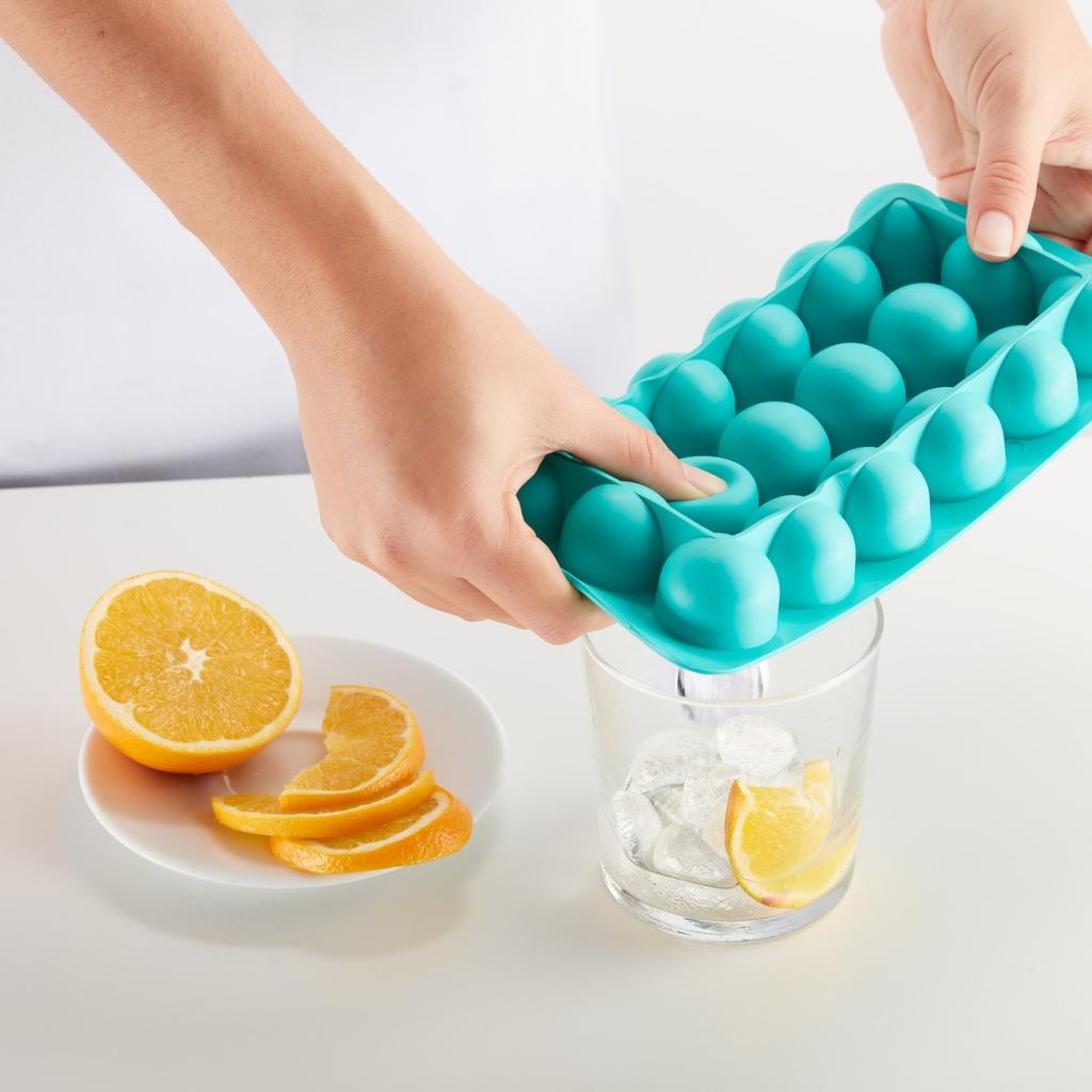 - okrúhle kocky ľadu sa pomaly topia a sú ideálne na chladenie koktailov, limonád alebo miešaných nápojov
