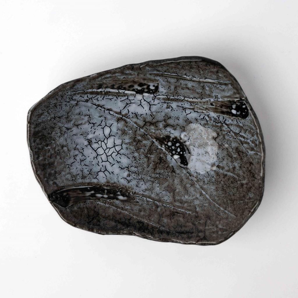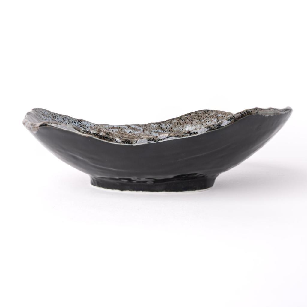 Jedálenský tanier SHIRANAMI 22 x 18 cm, čierna, keramika, MIJ