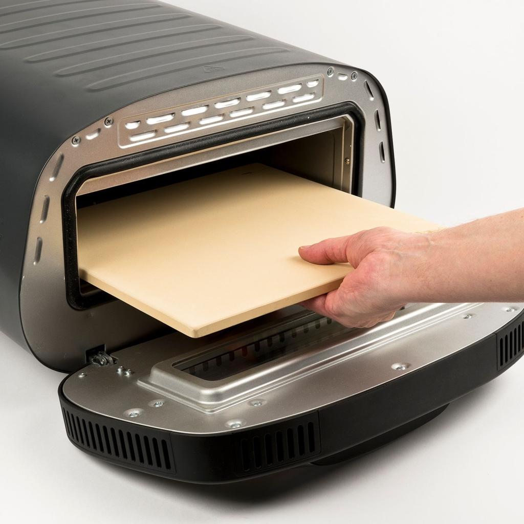 - ideálny na domáce pečenie pizze s profesionálnymi výsledkami vďaka rovnomernému rozloženiu tepla
