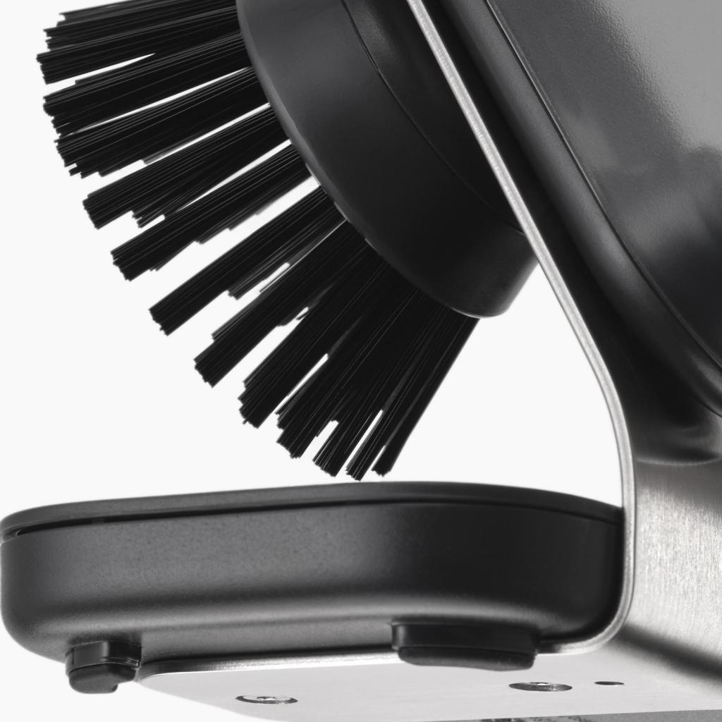 - Odolné štetiny navrhnuté proti zafarbeniu si dlhodobo zachovávajú čistý vzhľad a účinne odstraňujú zaschnuté zvyšky jedla z tanierov aj panvíc.