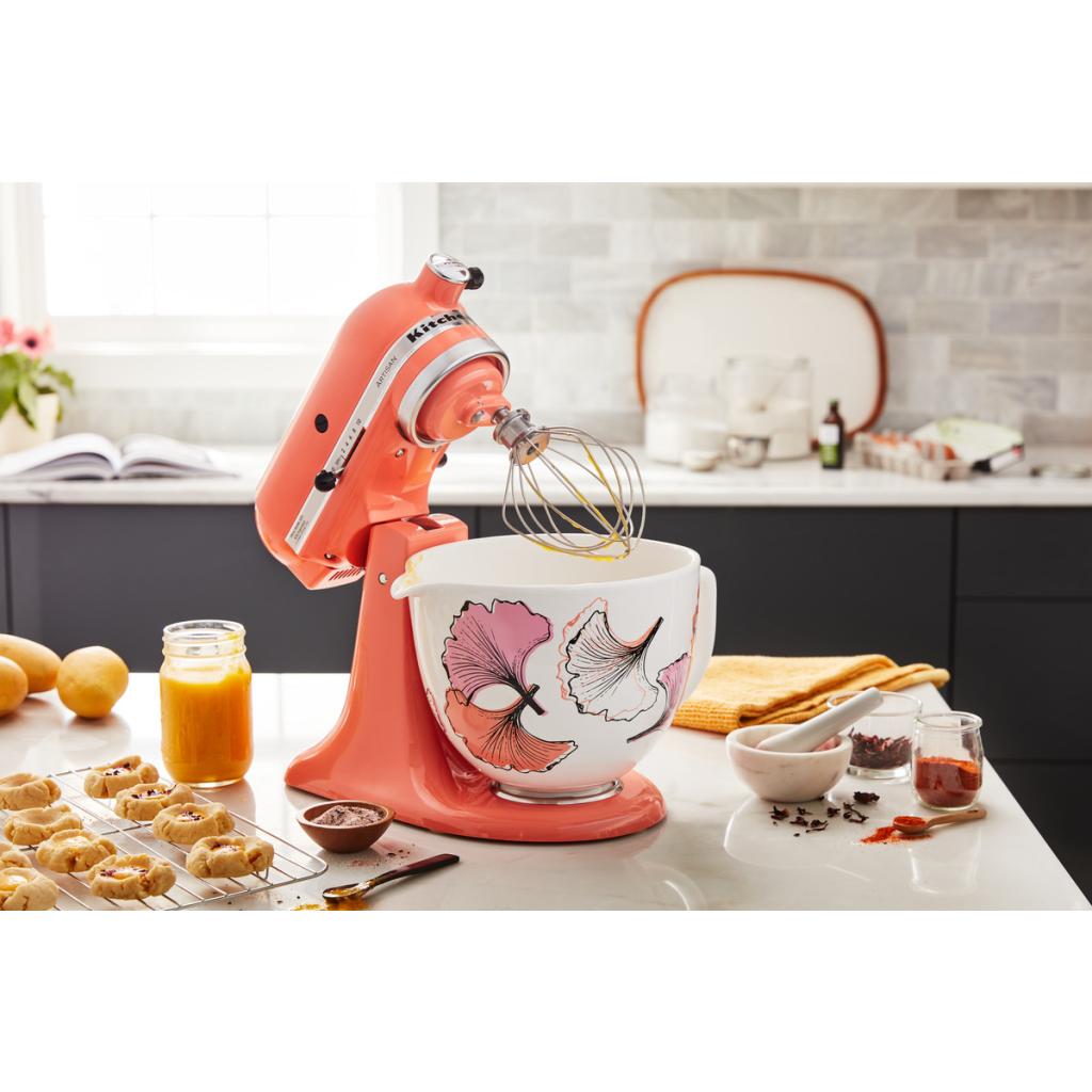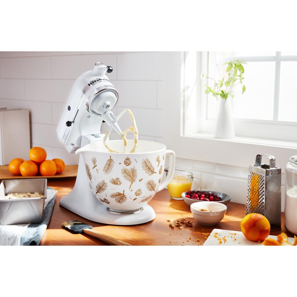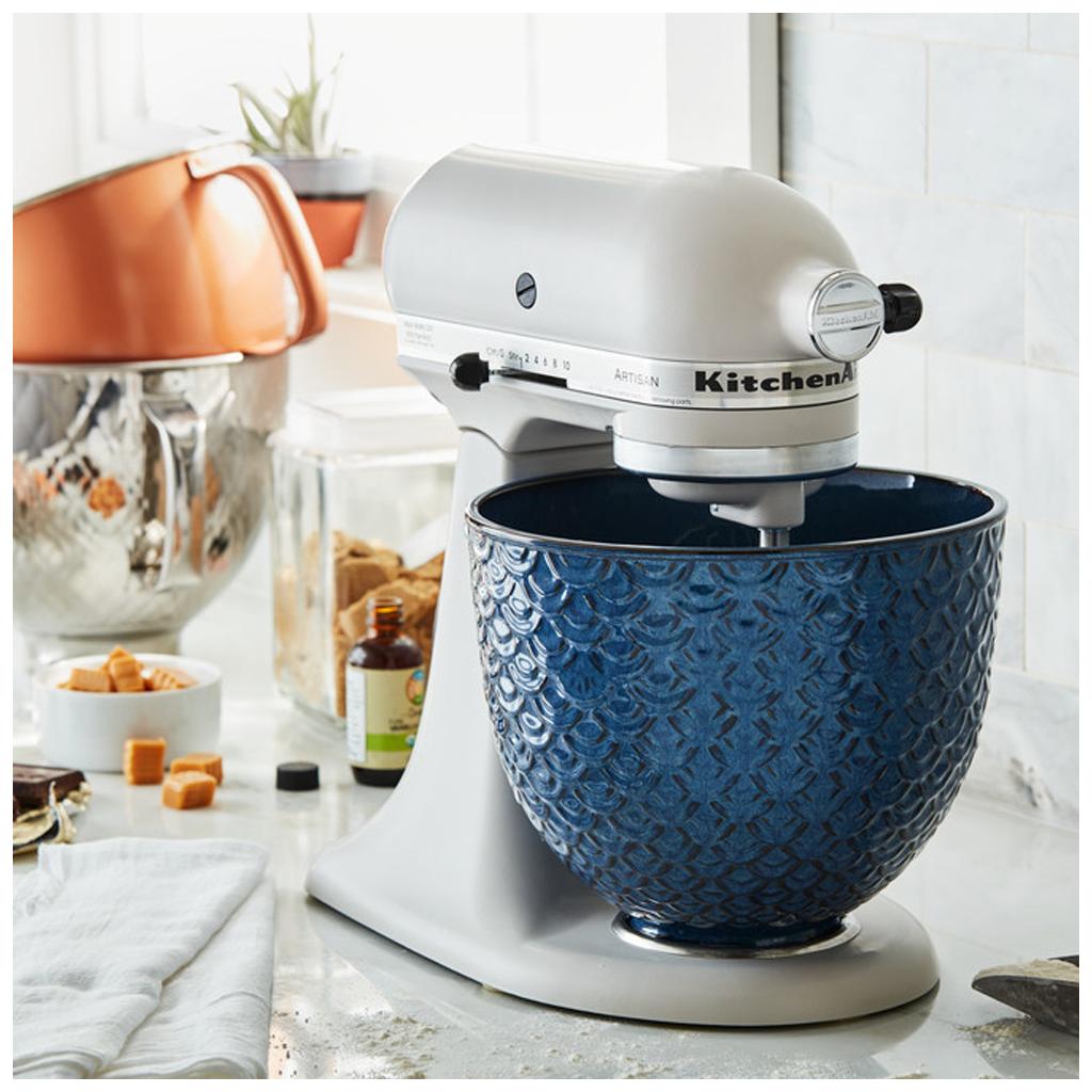Keramická misa KitchenAid 4,83 l je vyrobená z odolnej keramiky a je tvrdená titánom takže je misa veľmi odolná voči praskaniu, oderom či trhlinám. Má moderný dizajn s motívom rybacích šupín. Je ľahšia o 30% a vďaka tomu sa jednoduchšie prenášajú suroviny.