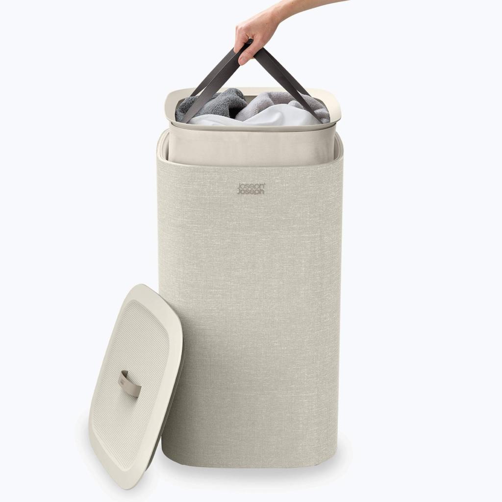 - Kôš na bielizeň Joseph Joseph TOTA ONE v odtieni ecru je priestranné a elegantné riešenie pre zber väčšieho množstva bielizne v domácnosti.
