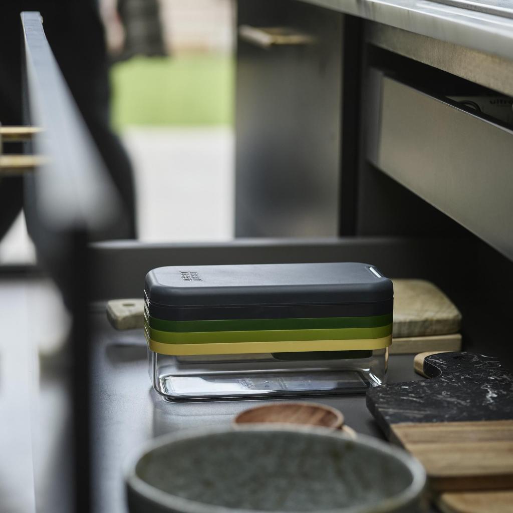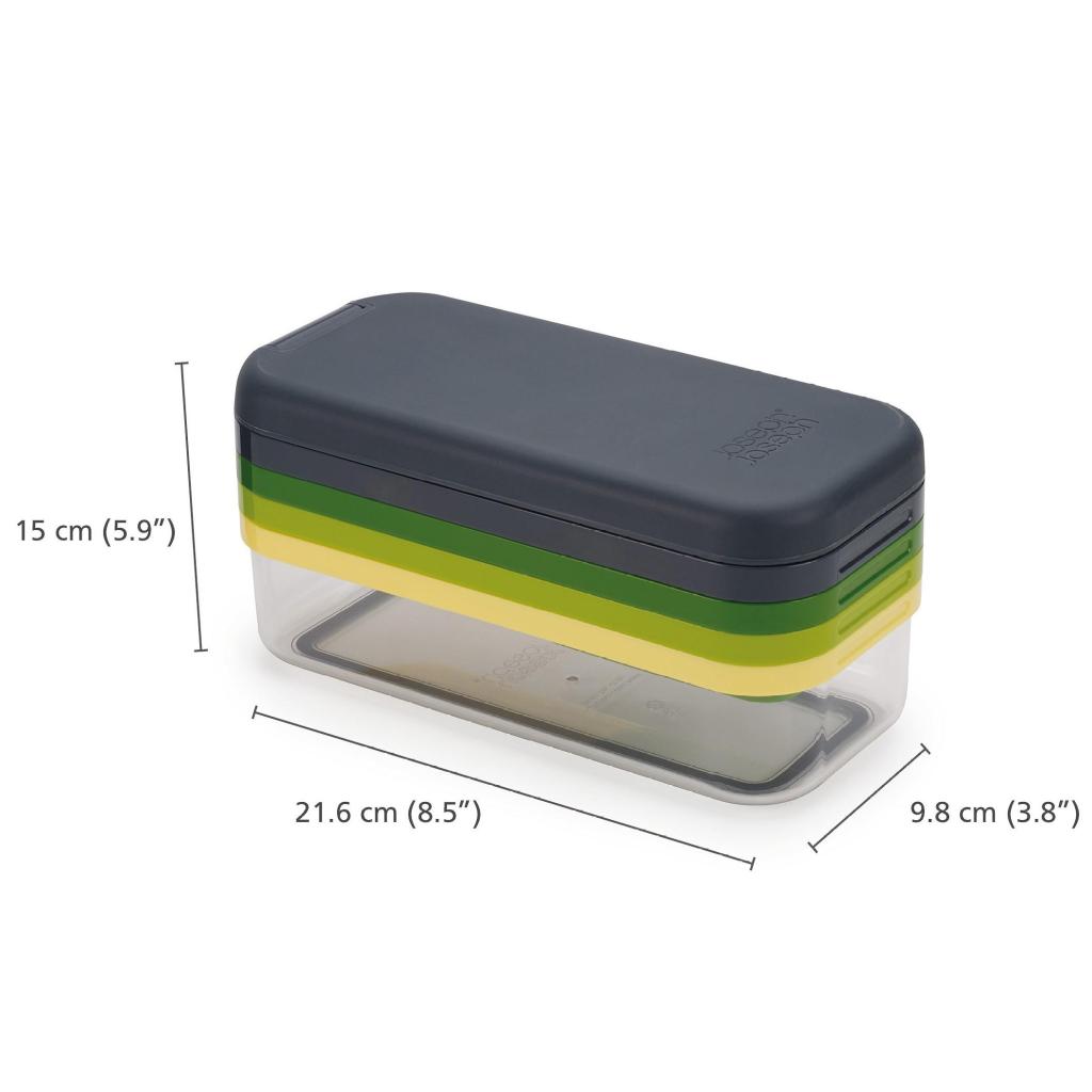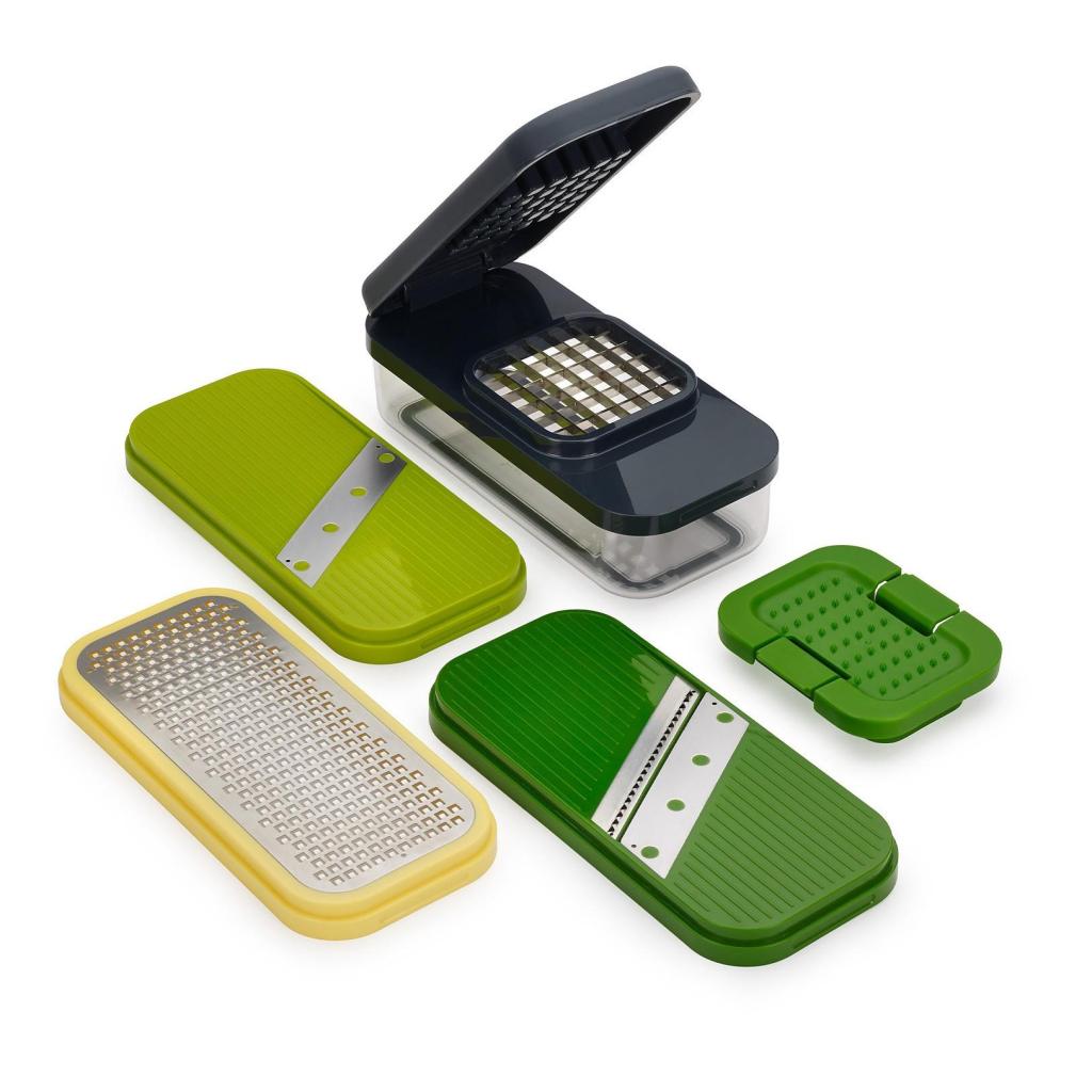 - Kompaktný multifunkčný krájač Joseph Joseph MULTI-PREP COMPACT umožňuje ľahko kosiť, strúhať, krájať na plátky aj vytvárať tenké rezančeky vďaka štyrom vymeniteľným nástavcom uloženým v jednej praktickej sade.