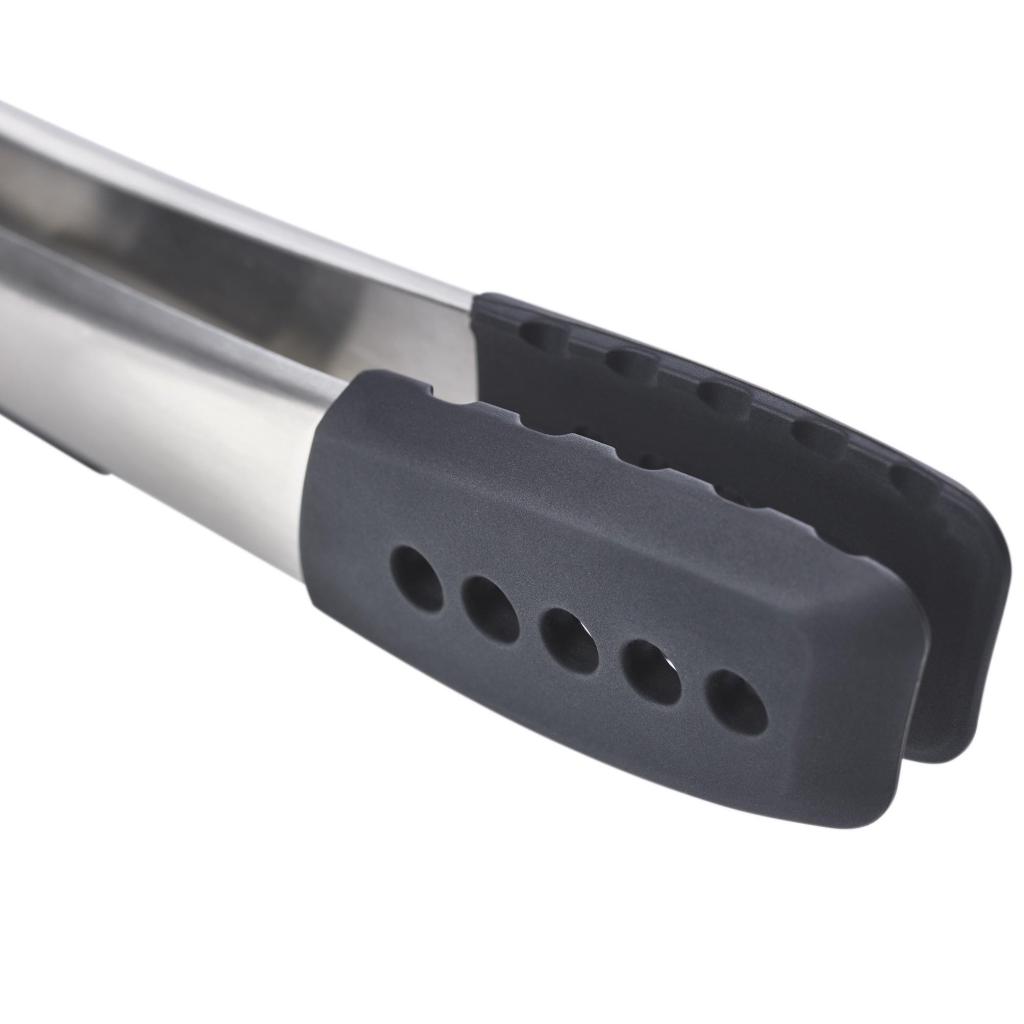 - Silikónové konce klieští odolávajú teplotám až do 270 °C a umožňujú bezpečné použitie pri manipulácii s horúcimi pokrmami.