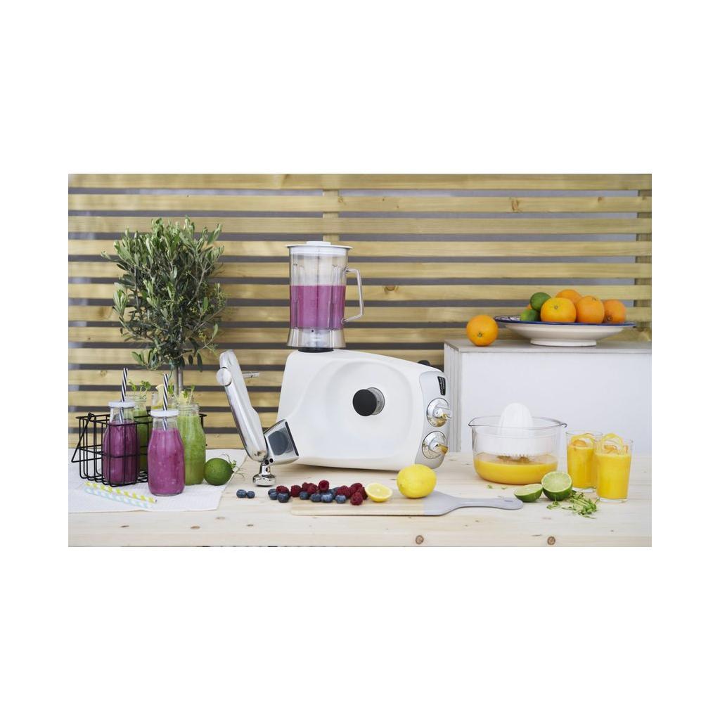 - voliteľné príslušenstvo: nástavec na cestoviny, citrusovač, mixér, mlynček na mäso, odšťavovač, strúhadlo na zeleninu, disky na cestoviny, mlynček na obilie, vločkovač, nástavec na sušienky