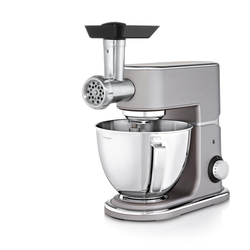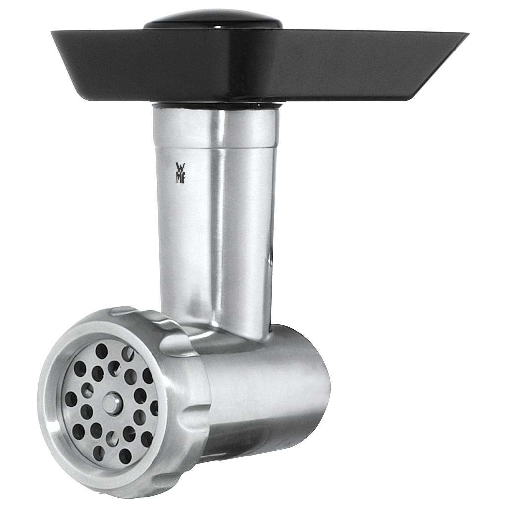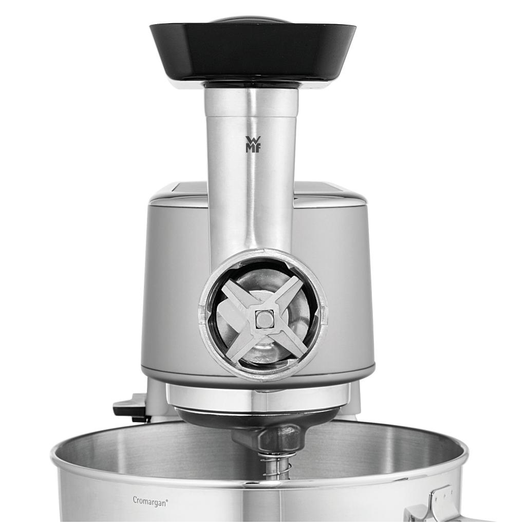 Mlynček na mäso od nemeckej značky WMF je voliteľným príslušenstvom ku kuchynskému robotu Profi Plus a KITCHENminis®. Vyrobený je z vysoko kvalitného odliatku hliníka. Vnútorný nôž so štyrmi čepeľami z ušľachtilej nehrdzavejúcej ocele Cromargan® bol vyrobený metódou Perfect Cut, je teda veľmi ostrý.