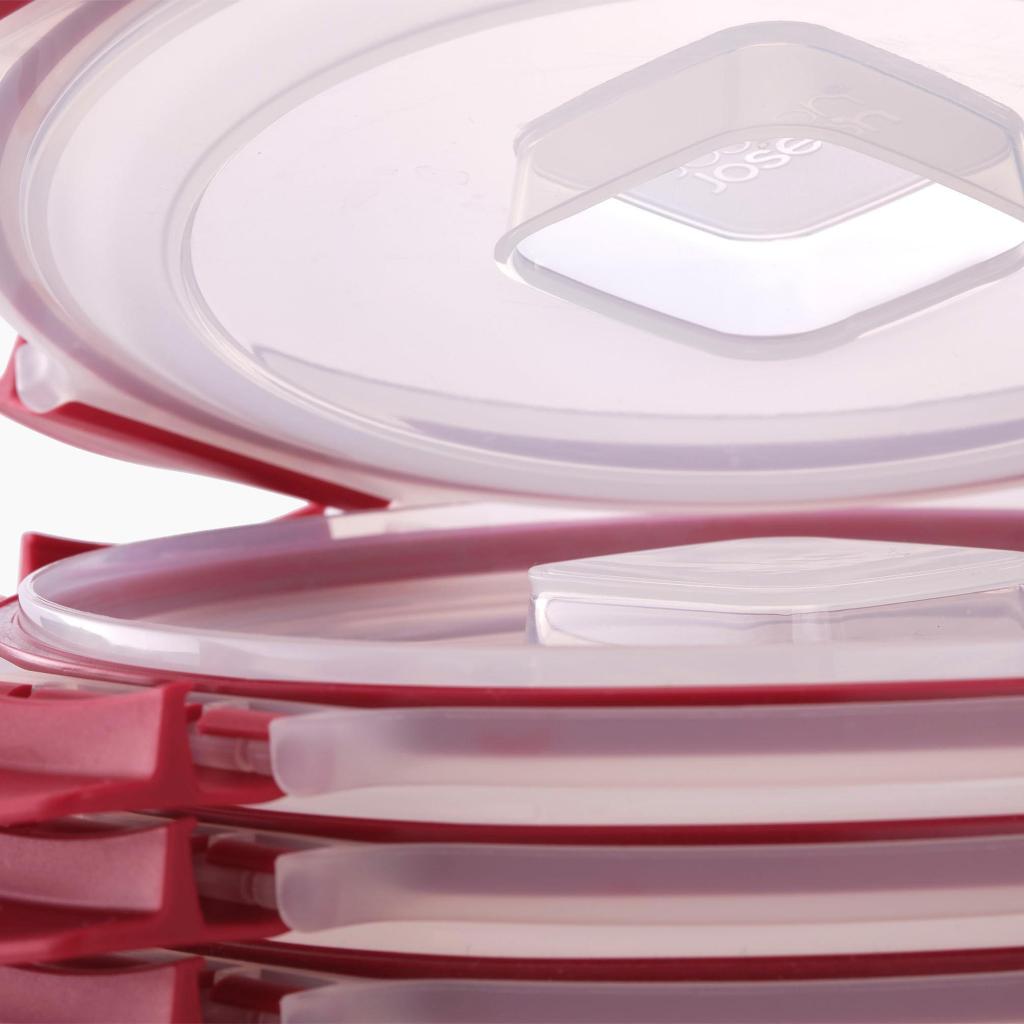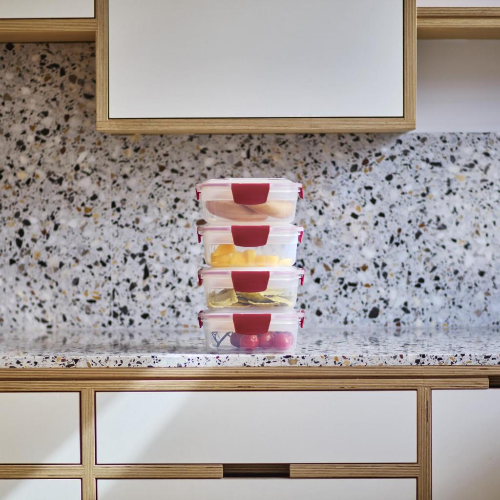 - Stohovateľné viečka držia pevne na mieste aj pri ukladaní viacerých naplnených nádob na seba, takže chladnička zostáva prehľadná a organizovaná.