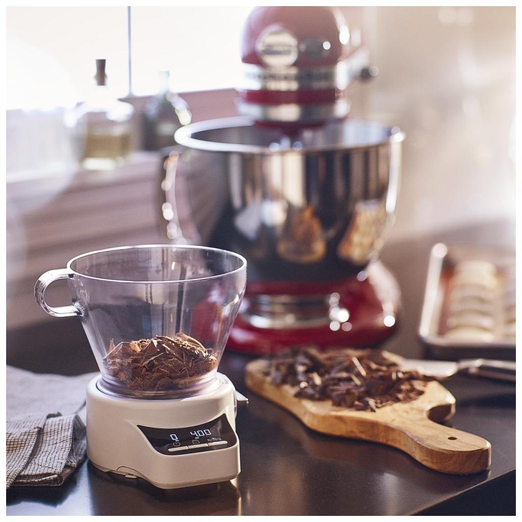 Integrovaná digitálna váha odmeria suroviny podľa hmotnosti tak, aby ich pomer čo najlepšie zodpovedal vyrábanému pokrmu. Násypka pomôže pri pomalom pridávaní jednotlivých ingrediencií počas chodu mixéra a je možné ju používať aj samostatne na kuchynskej doske s vážiacim tanierom (súčasťou balenia). Na skladovanie potom využijete menší úložný box.