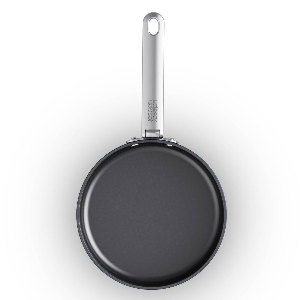 - Vďaka skladaciemu mechanizmu možno panvicu ľahko stohovať s ďalšími kusmi riadu, čo výrazne uľahčuje organizáciu kuchynského priestoru.