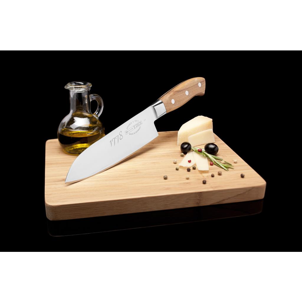 Tradičný japonský nôž Santoku má široké využitie pri príprave morských plodov, mäsa a zeleniny a pomaly sa stáva neodmysliteľnou súčasťou slovenských kuchýň a všetkých milovníkov varenia a kvalitných kuchynských pomôcok. Rukoväť noža Santoku je vyrobená zo slivkového dreva. Tento nôž sa štandardne dodáva v darčekovej súprave.