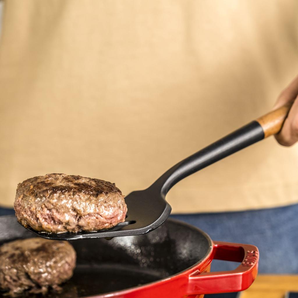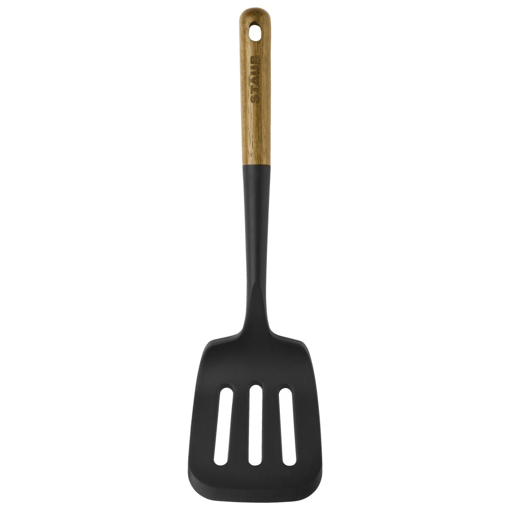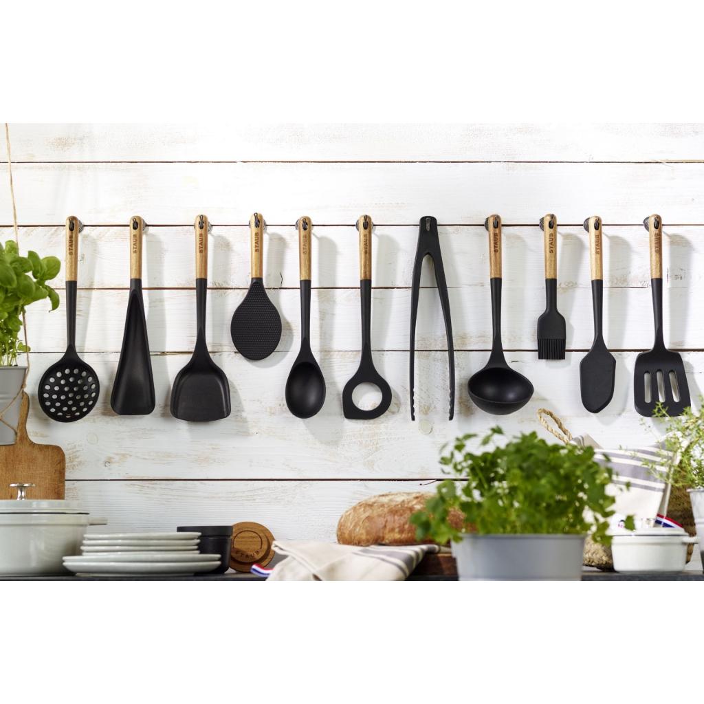 - pracovná časť z čierneho matného silikónu je dokonale kompatibilná s liatinovým riadom Staub