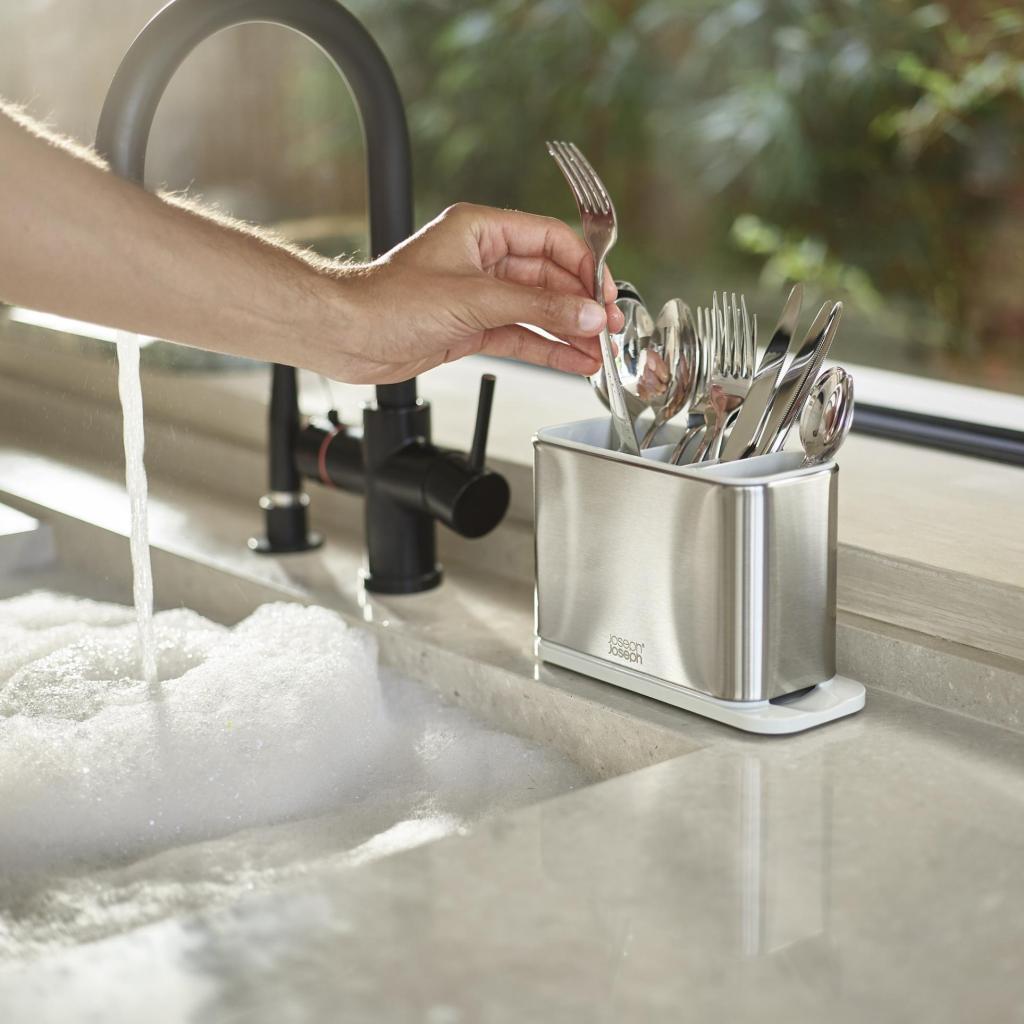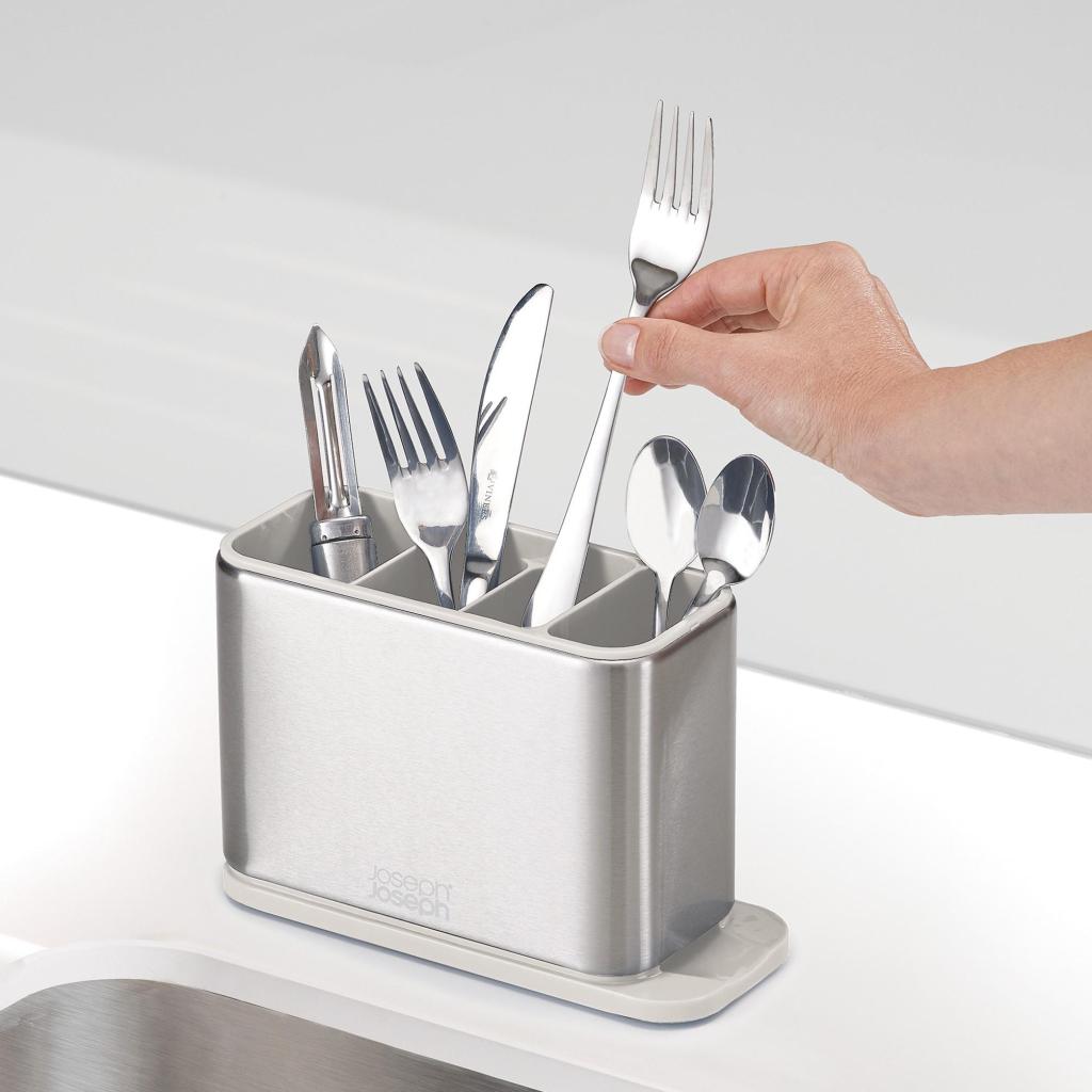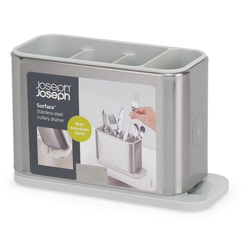 - Odkapávač na príbory Joseph Joseph SURFACE pomáha udržať pracovnú plochu pri dreze prehľadnú a umožňuje pohodlné sušenie príborov po umytí.