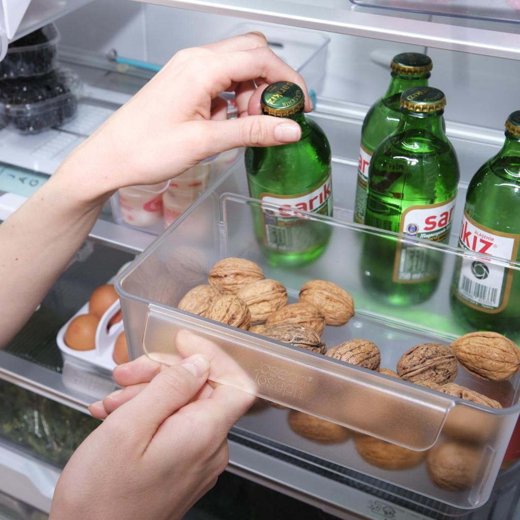 - Box pomáha udržiavať poriadok v chladničke a zabraňuje tomu, aby sa menšie potraviny strácali v zadnej časti políc.
