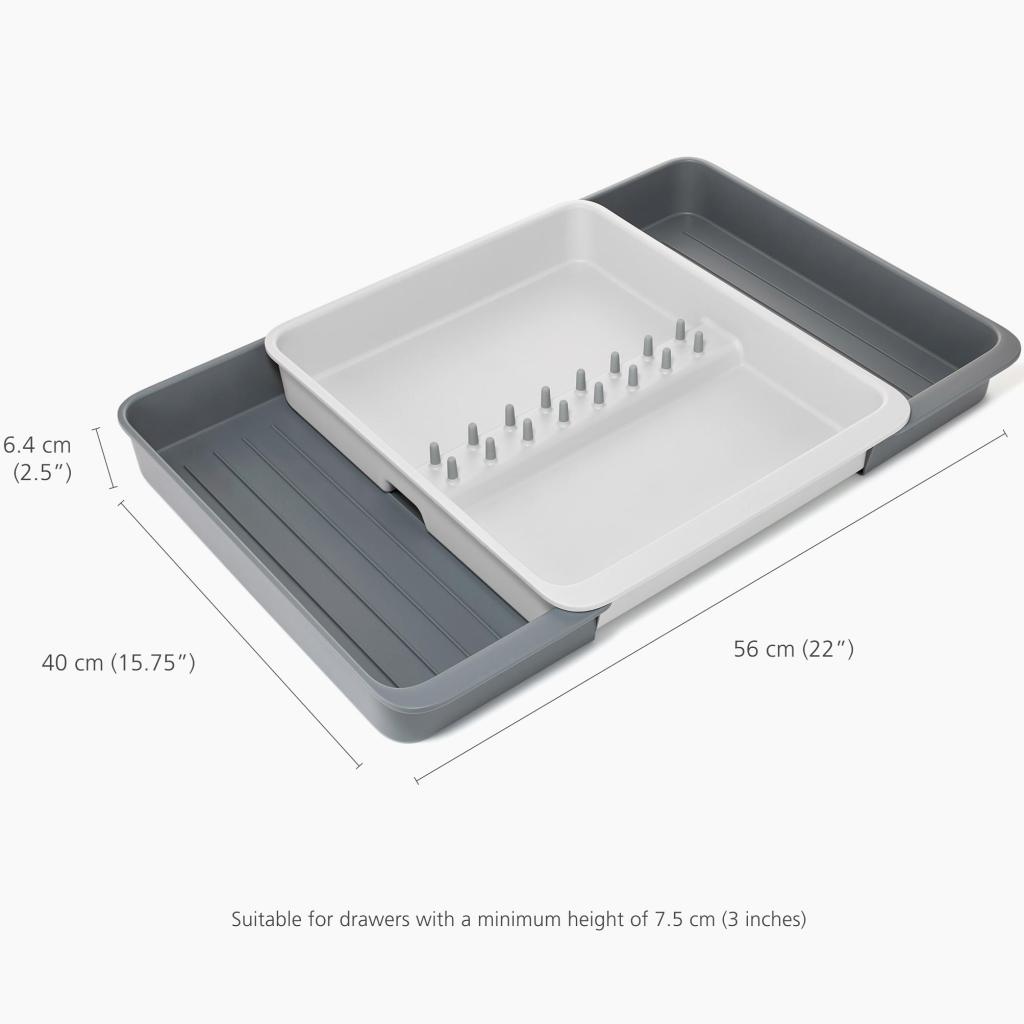 - Organizér je navrhnutý pre zásuvky s minimálnou výškou 7,5 cm, takže sa hodí do väčšiny bežných kuchynských liniek.