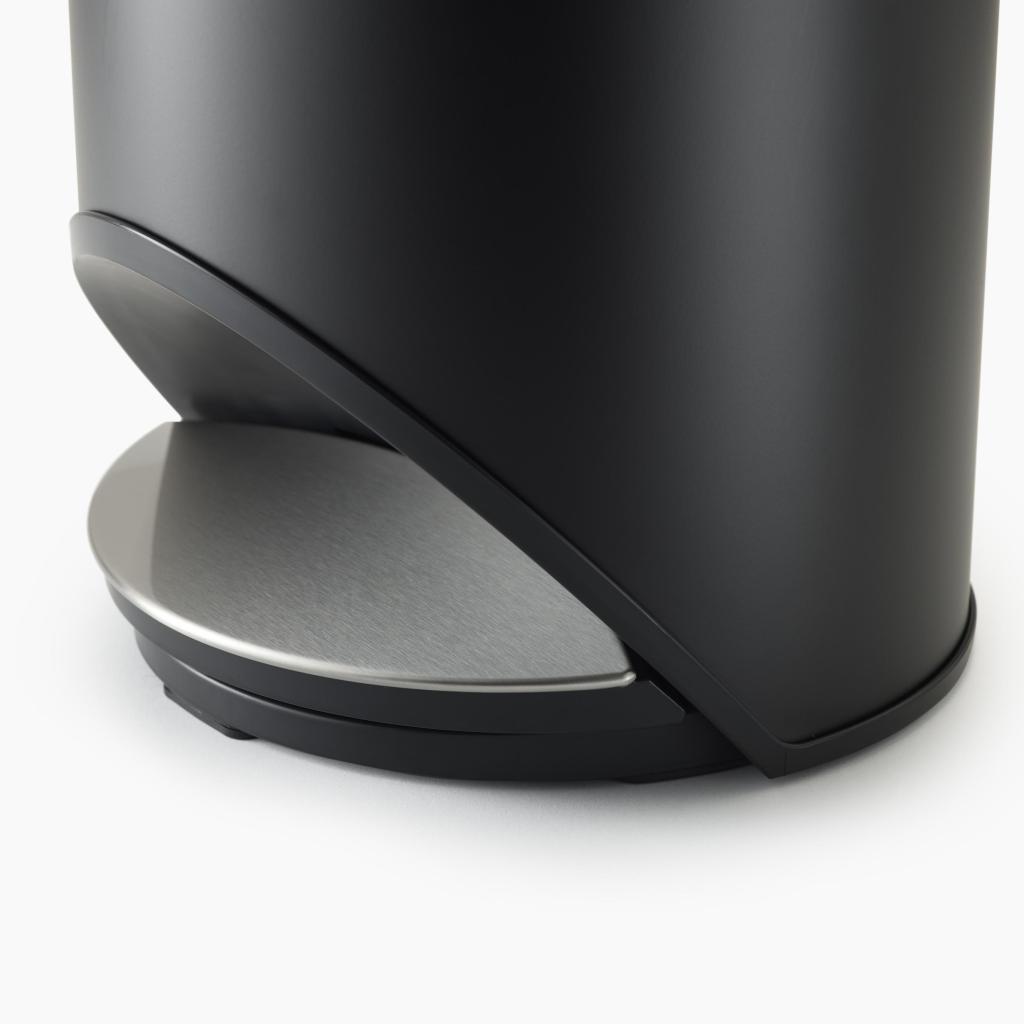 - Premyslený guľatý dizajn umožňuje, aby pedál zapadol priamo do pôdorysu koša a nezaberal ďalšie miesto na podlahe.