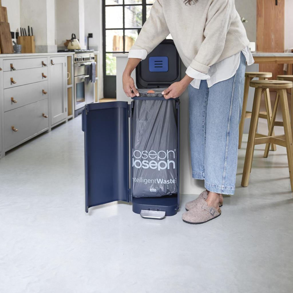 - Kôš je kompatibilný s vrecami Joseph Joseph IW5 s objemom 40 litrov, ale použiť sa dajú aj bežné vrecia zodpovedajúcej veľkosti.