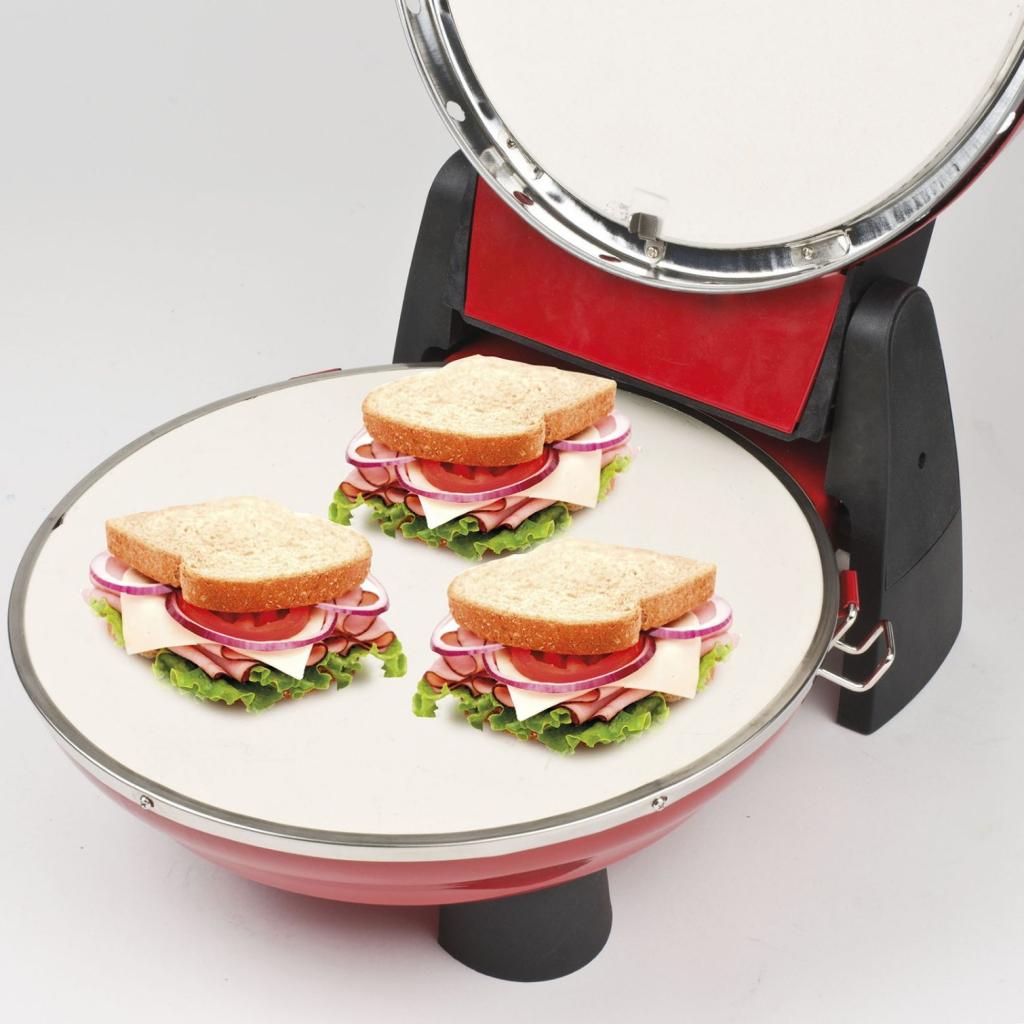- súčasťou balenia sú 2 žiaruvzdorné platne s priemerom 31 cm, ktoré zabezpečujú rovnomerné varenie z oboch strán