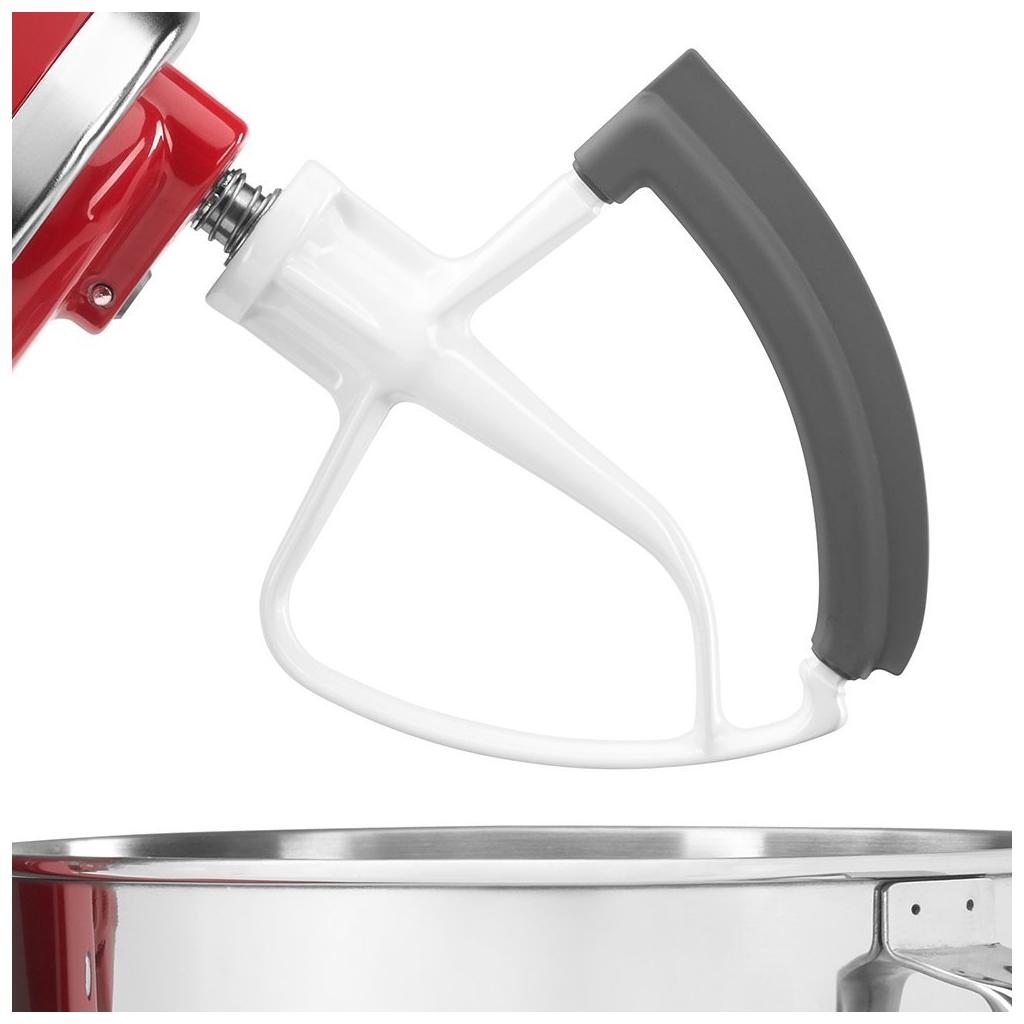 Plochý šľahač s flexi stierkou KitchenAid je dodatočným príslušenstvom pre 5KSM150PS-156 Kuchynský robot Artisan s misou s objemom 4,8 l (a pre rady robotov: 5K45, 5KPM50, 5KSM125, 5KSM175). Šľahač je vyrobený z hliníka s nepriľnavým nylonovým povrchom, stierka zo silikónu. Vhodný na umývanie v umývačke riadu.