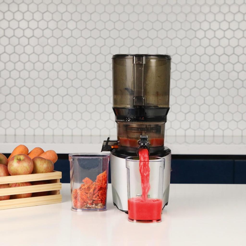 - Odšťavovač získal prestížne ocenenia Kitchen Innovation Award 2025, Kitchen Innovation Award 2023 a Red Dot Award 2022, čím sa stal jedným z najoceňovanejších produktov v modernej kuchyni.