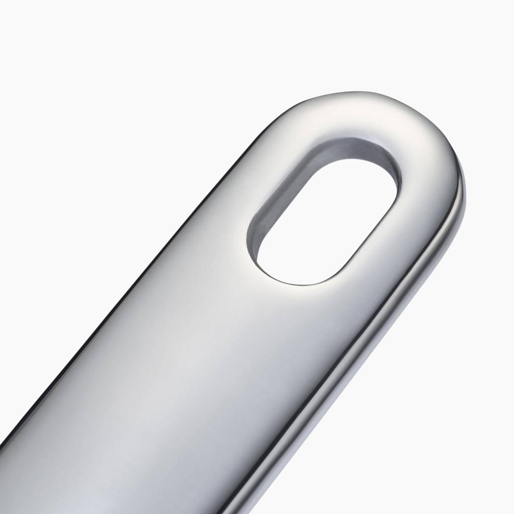- Na konci rukoväte je praktické očko na zavesenie, ktoré umožňuje alternatívne skladovanie na háčikoch alebo závesných lištách.