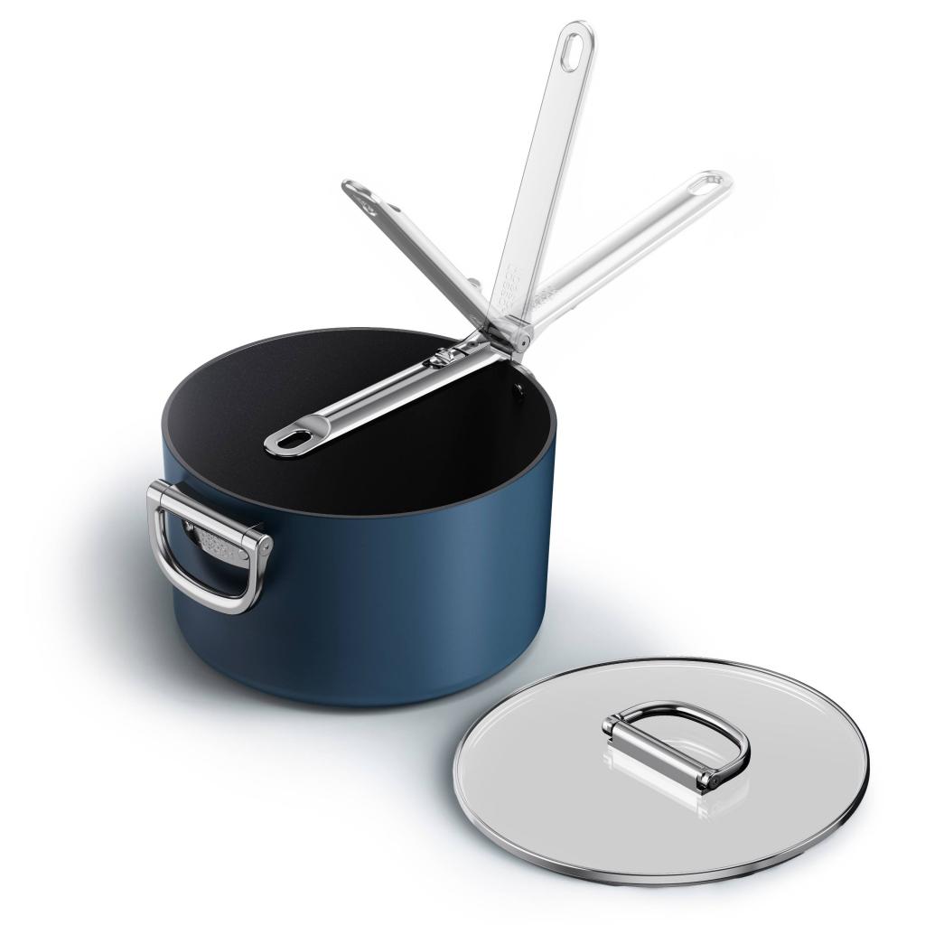 - Obe rukoväte sú sklopné, preto je možné rajnica ľahko stohovať s ďalším riadom a efektívne využiť úložný priestor v kuchynských skrinkách.