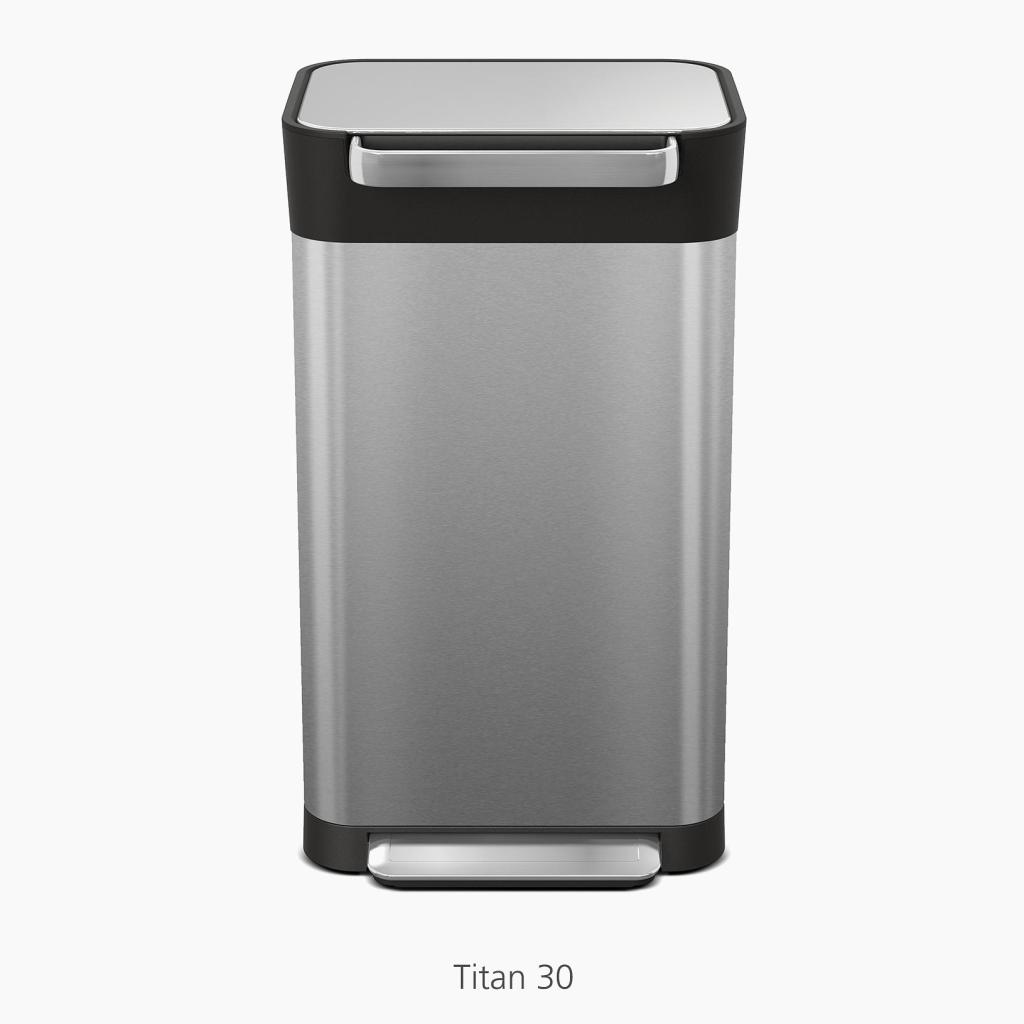 - Pri použití v koši Joseph Joseph Titán 30 je možné vďaka kompresnému mechanizmu uložiť až 90 litrov stlačeného odpadu.