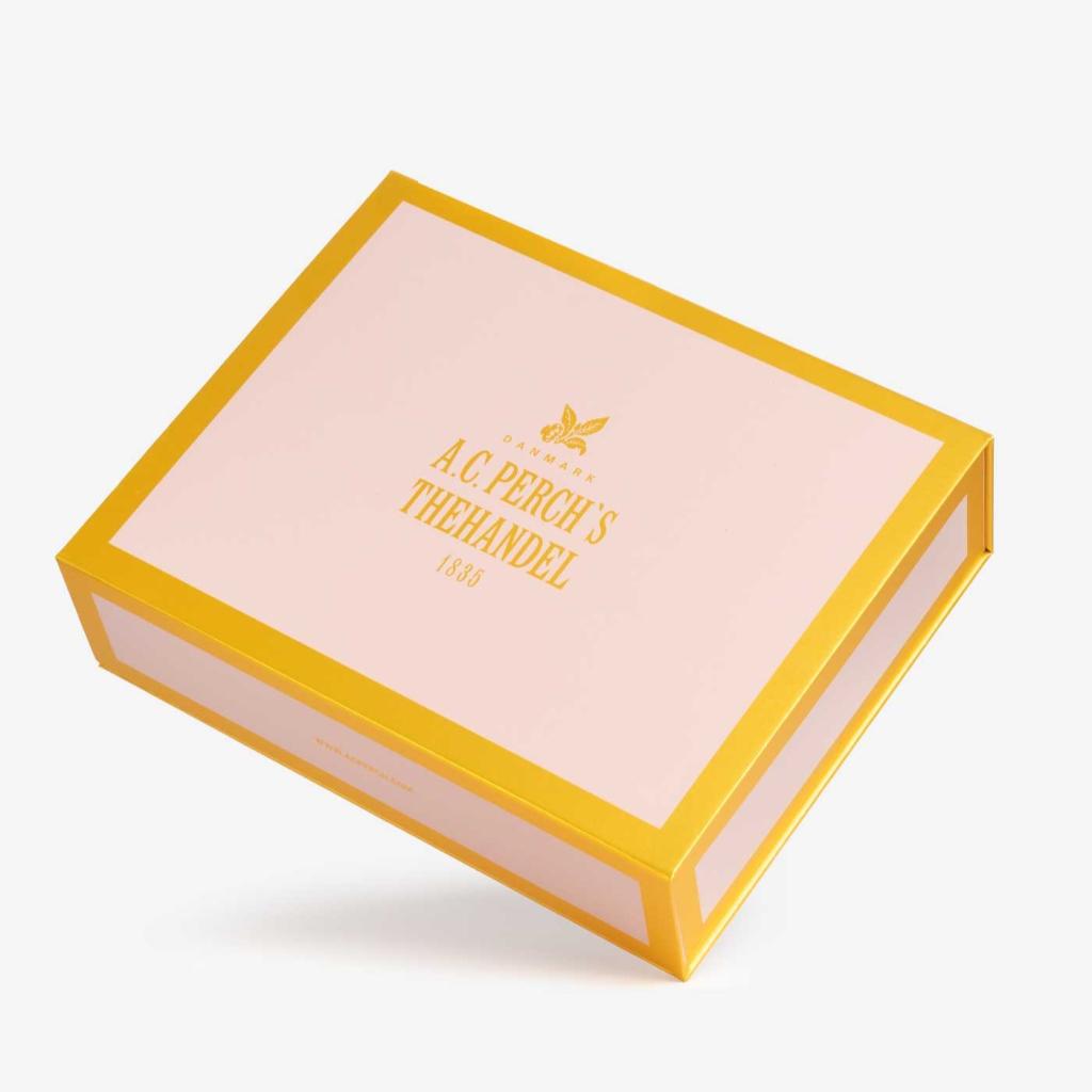 - darčeková krabička so žltým okrajom a zlatou potlačou vyzerá luxusne a robí zo súpravy ideálny darček