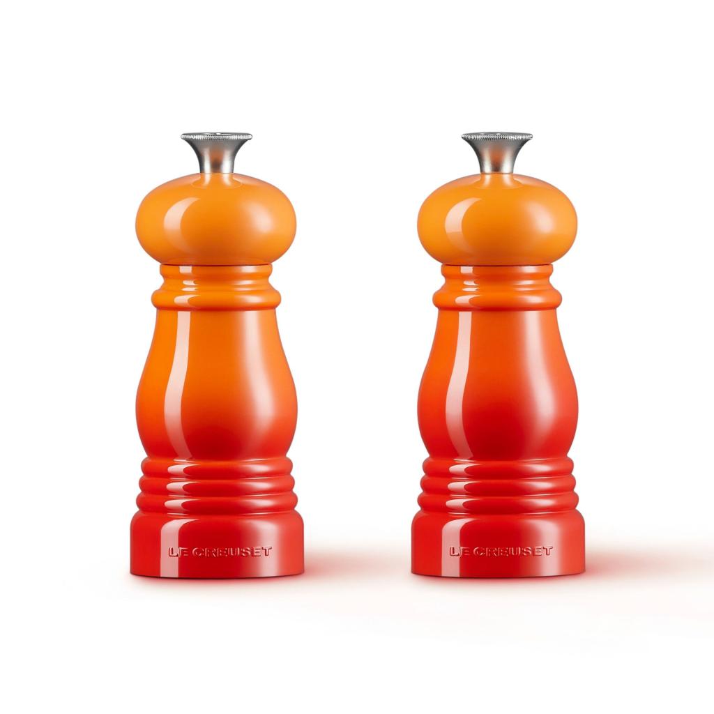 - Sada mini mlynčekov na soľ a korenie Le Creuset v odtieni FLAME prináša do kuchyne štýl, funkčnosť aj radosť z každodenného dochucovania jedál.