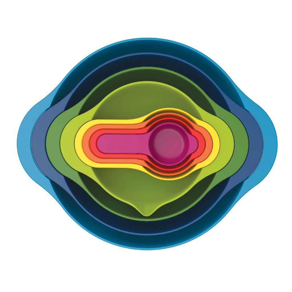 Súprava kuchynských misiek NEST DUO , 8 ks, s kuchynskou odmerkou, stohovateľné, farebné, Joseph Joseph