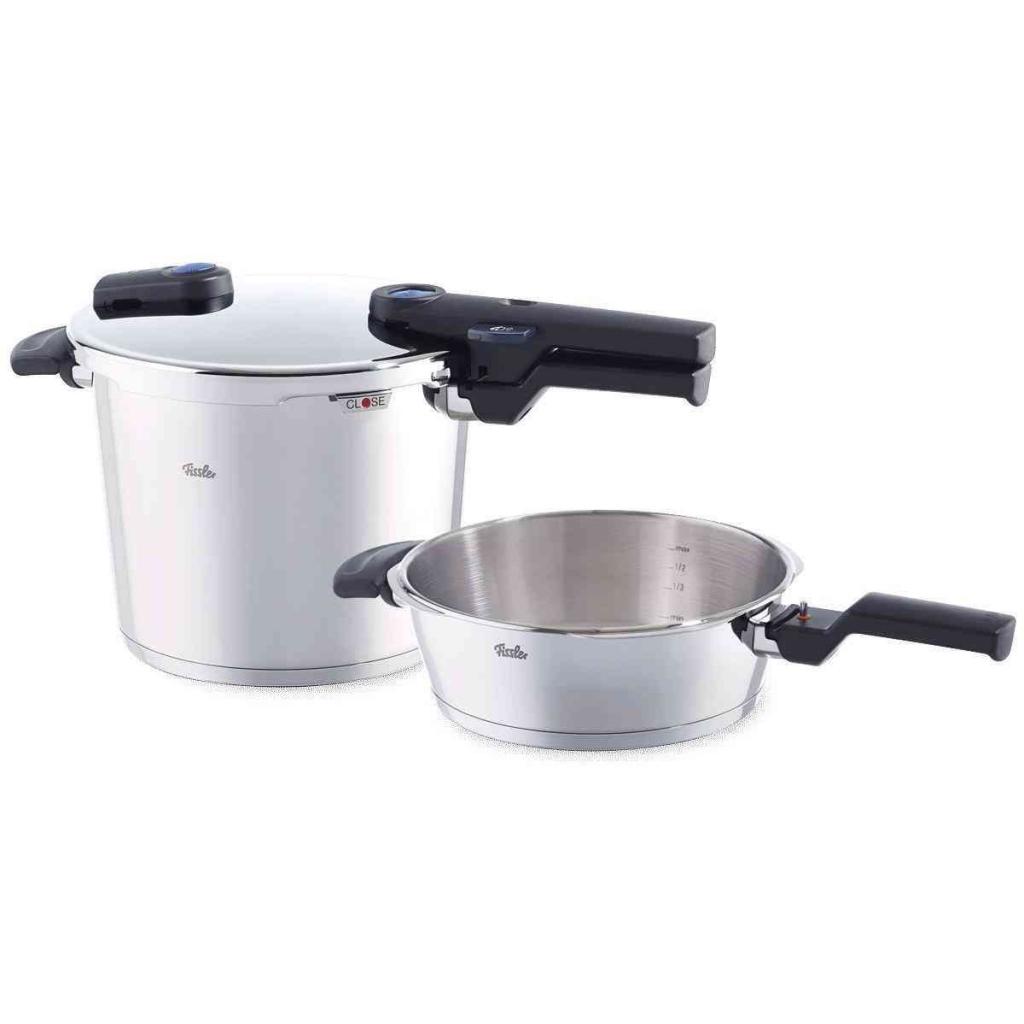 Sada 2 tlakových hrncov Vitaquick od spoločnosti Fissler je vyrobená z vysoko kvalitnej leštenej nehrdzavejúcej ocele 18/10. Tlakové hrnce môžu ušetriť až 70 % času varenia a 50 % energie a sú tiež šetrnejšie k vitamínom a minerálom.