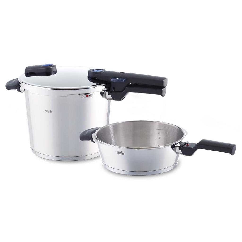 Sada 2 tlakových hrncov Vitaquick od spoločnosti Fissler je vyrobená z vysoko kvalitnej leštenej nehrdzavejúcej ocele 18/10. Tlakové hrnce môžu ušetriť až 70 % času varenia a 50 % energie a sú tiež šetrnejšie k vitamínom a minerálom.