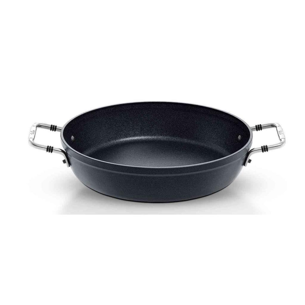 Servírovacia panvica Adamant Fissler s priemerom 24 cm je odolná voči vysokým teplotám a má vysokú odolnosť proti poškriabaniu a iným mechanickým poškodeniam. Je vhodná do umývačky riadu, na indukciu a do rúry do 220°C.