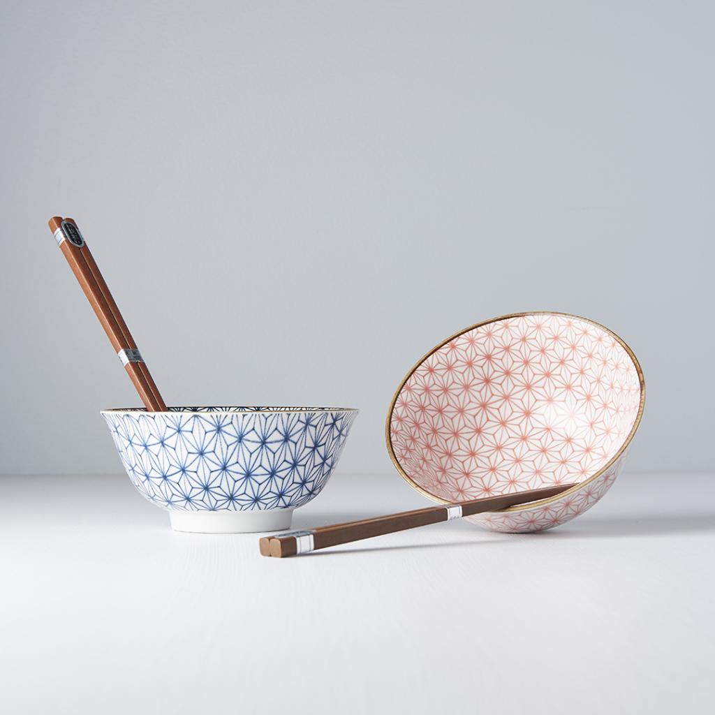 Veľká misa ASANOHA DESIGN , sada 2 ks, 500 ml, s jedálenskými paličkami, MIJ