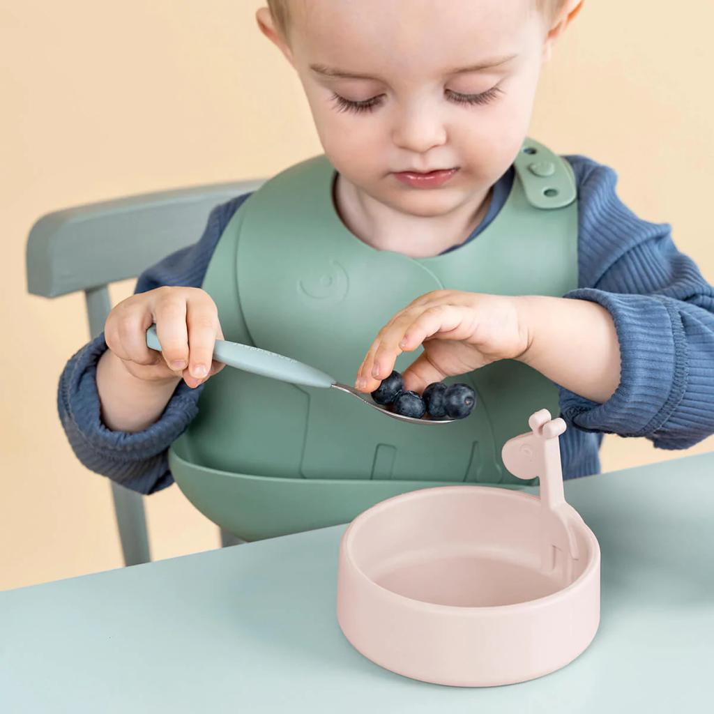Detská miska PEEKABOO RAFFI 275 ml, ružová, silikón, Done by Deer