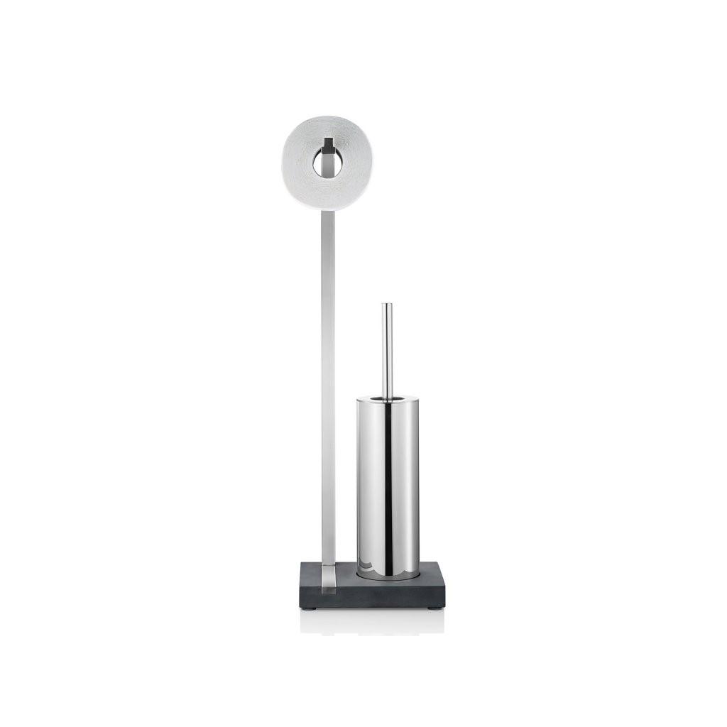 Stojan na toaletný papier s WC kefou MENOTO, 65 cm, leštená nehrdzavejúca oceľ, Blomus