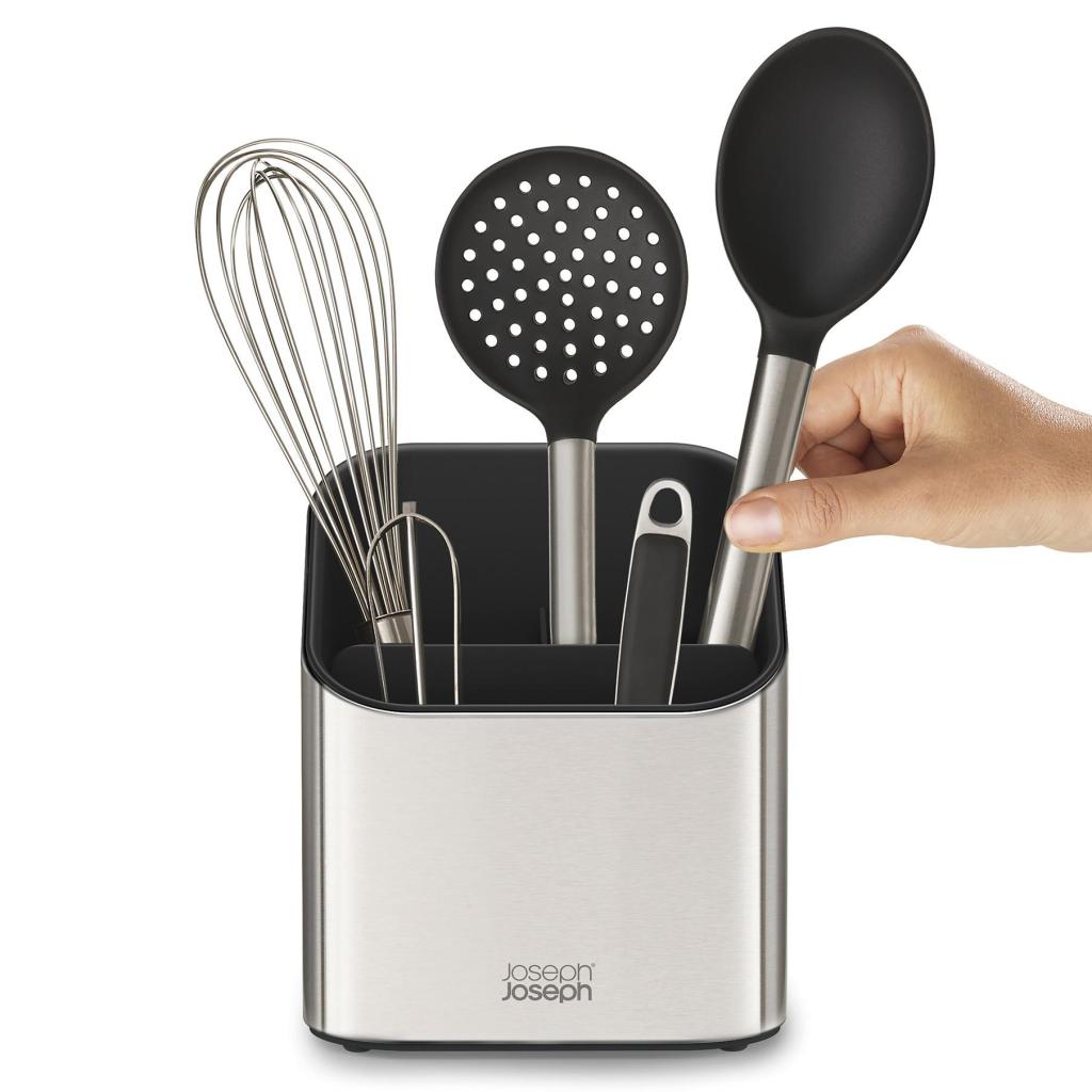 - Stojan na kuchynské pomôcky Joseph Joseph SURFACE pomáha udržať varešky, naberačky aj ďalšie kuchynské nástroje prehľadne usporiadané a vždy ľahko dostupné na pracovnej doske.