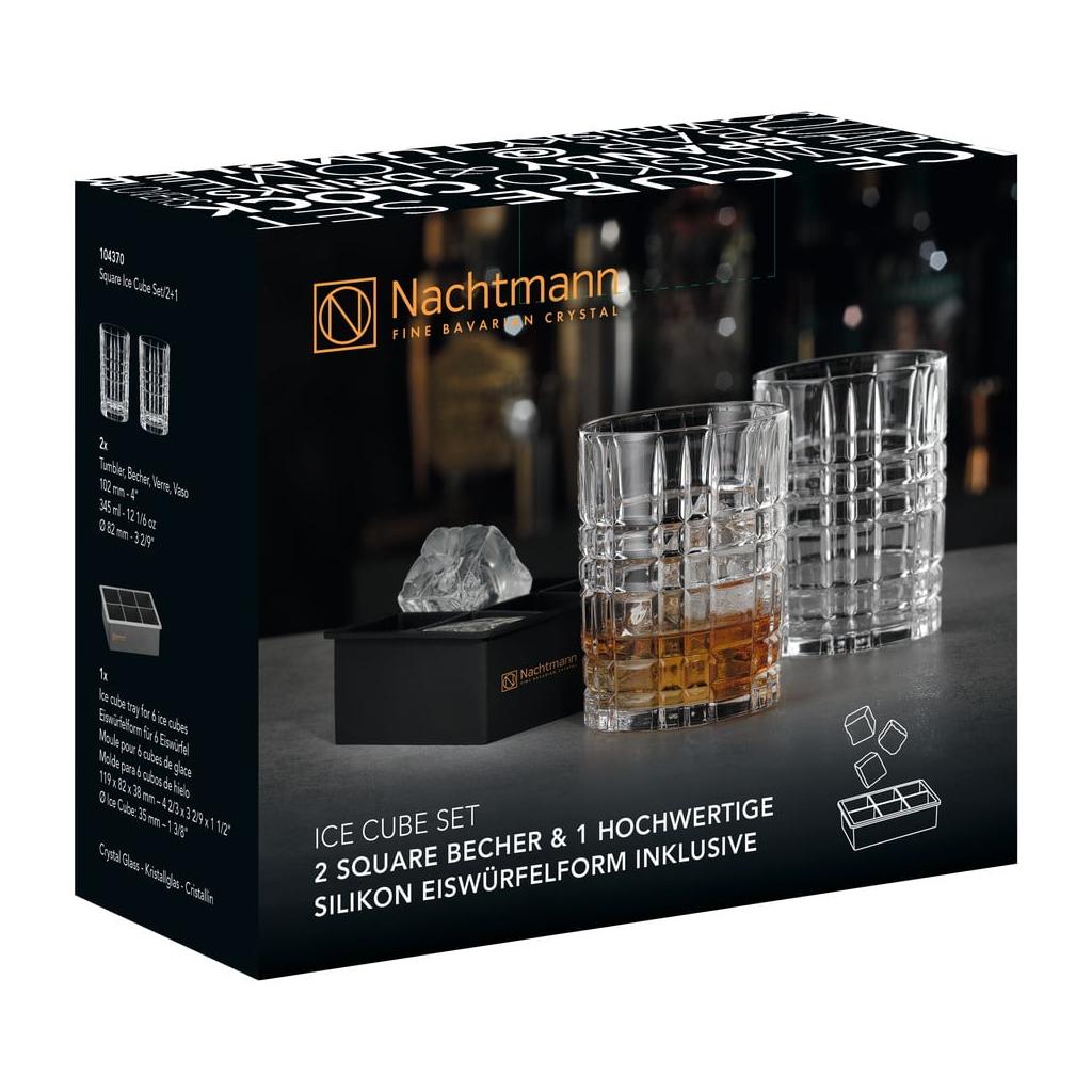 Poháre na whisky a forma na výrobu kociek ľadu v súprave SQUARE, 2 x 345 ml, Nachtmann