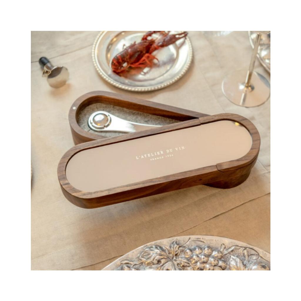 - sada základných nástrojov na otváranie a skladovanie šumivých vín v luxusnej škatuli s tajnou priehradkou