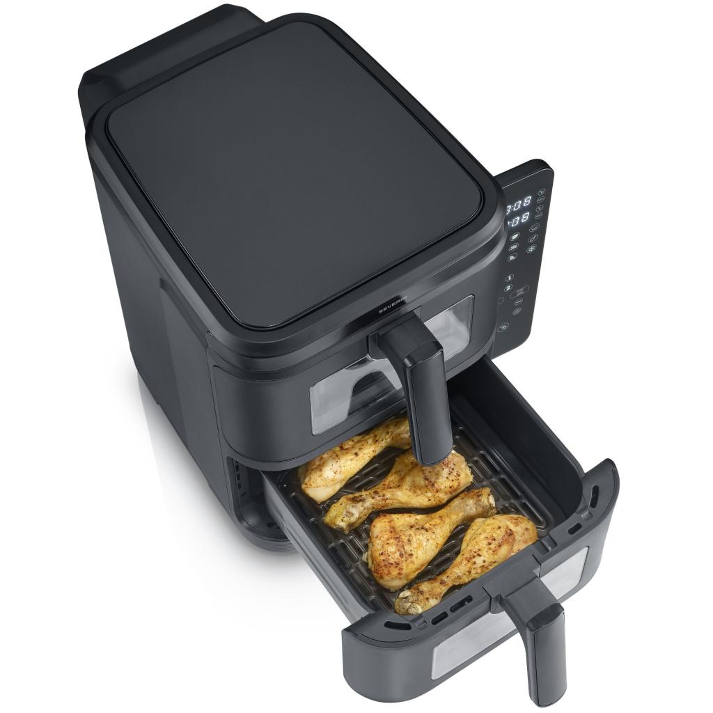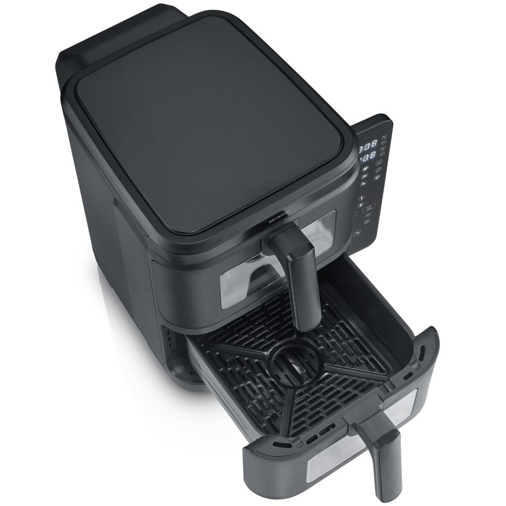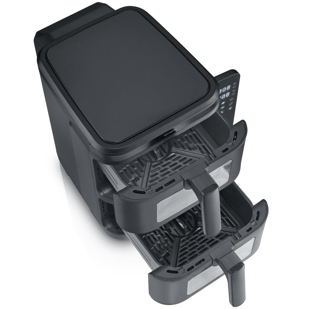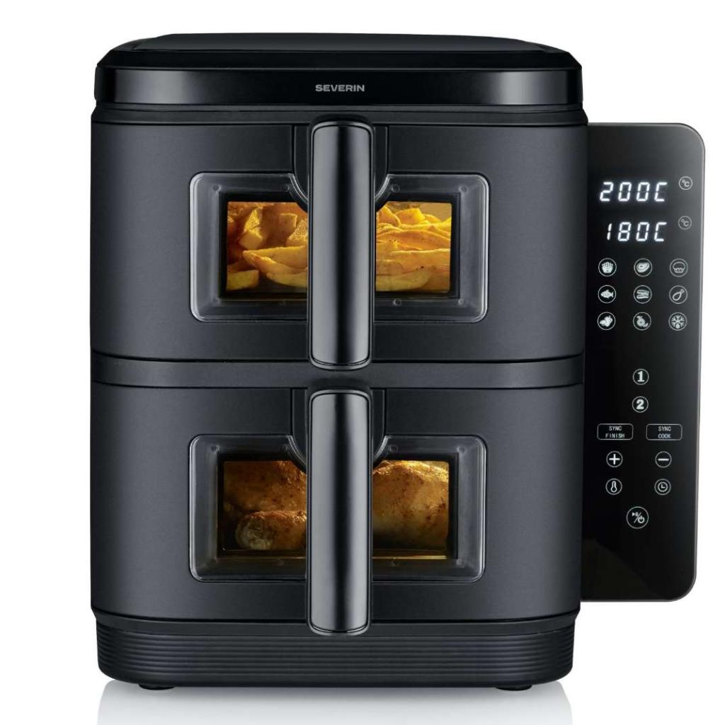 - teplovzdušná fritéza Severin FR 2468 s duálnym usporiadaním ponúka zdravý spôsob varenia bez oleja v kompaktnom a výkonnom prevedení