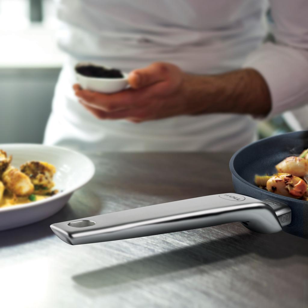 Elegantný dizajn s matnou nehrdzavejúcou rukoväťou je nielen krásny na pohľad, ale aj veľmi praktický. Nosná časť ergonomických rukovätí je vliata do odliatku panvice. Tvoria tak jeden celok, čo zaisťuje ich bezpečné držanie. Použitá nehrdzavejúca oceľ sa dobre čistí, je hygienická, odolná proti nárazom aj potravinovým kyselinám a predovšetkým vhodná na zapekanie v rúre. Vďaka vysokej kvalite spracovania a odolnosti materiálov sú panvice Diamond Lite PRO vhodné pre kuchárov amatérov aj na profesionálne využitie.