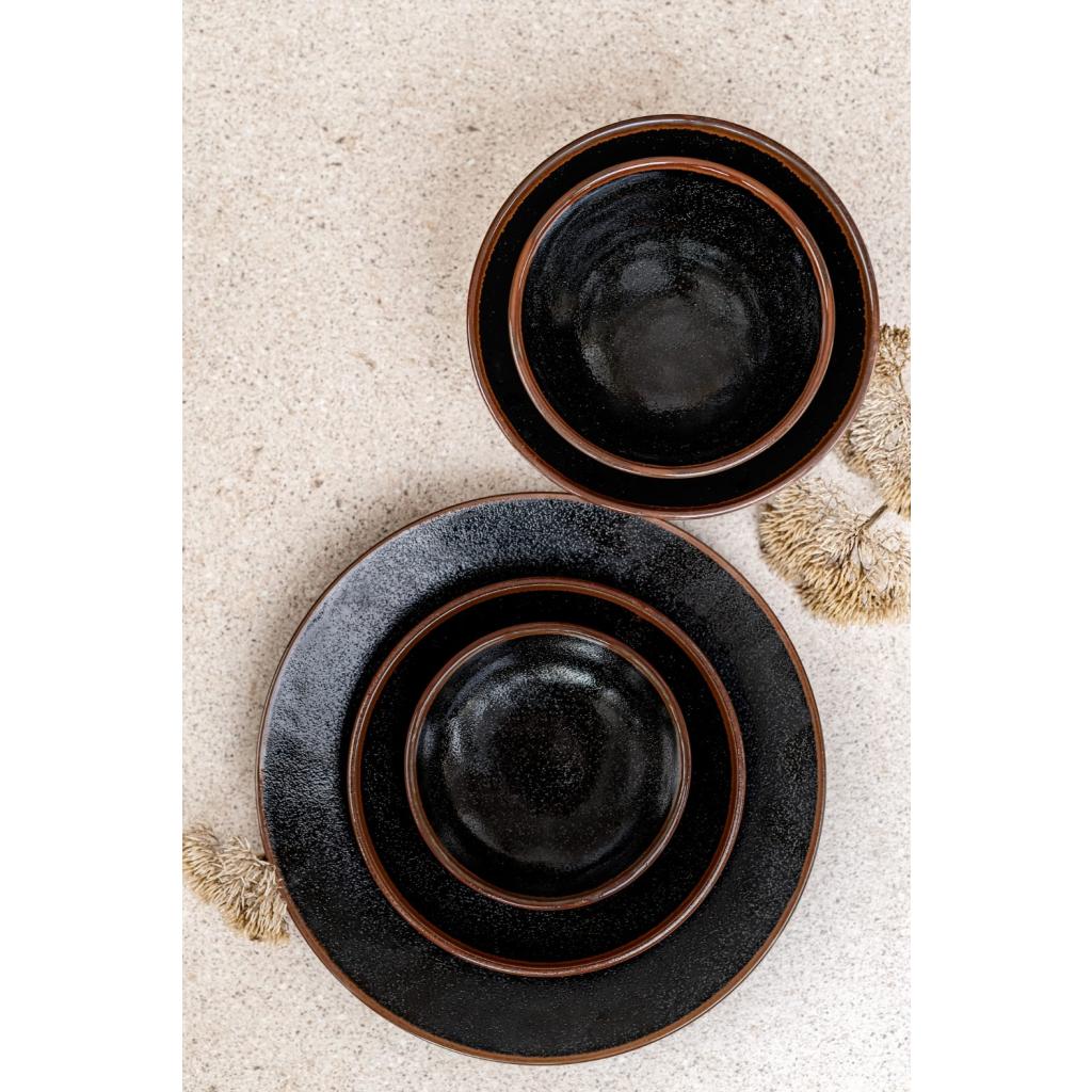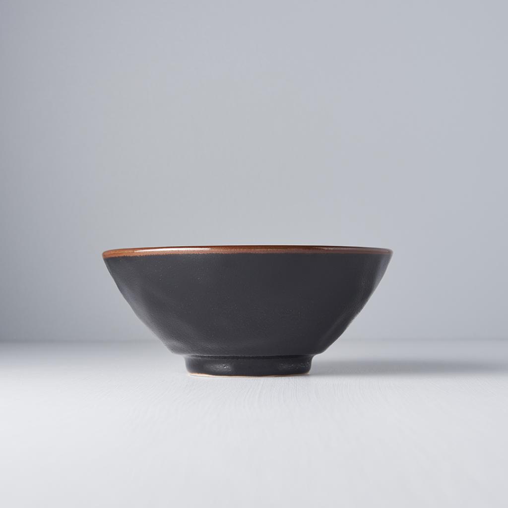 Riad z kolekcie Tenmokku sa vyznačuje čiernou farbou, jemne zrnitým povrchom a okrajom, ktorý je ohraničený hnedou farbou. Miska je ideálna na servírovanie udon rezancov alebo polievky Pho Bo.