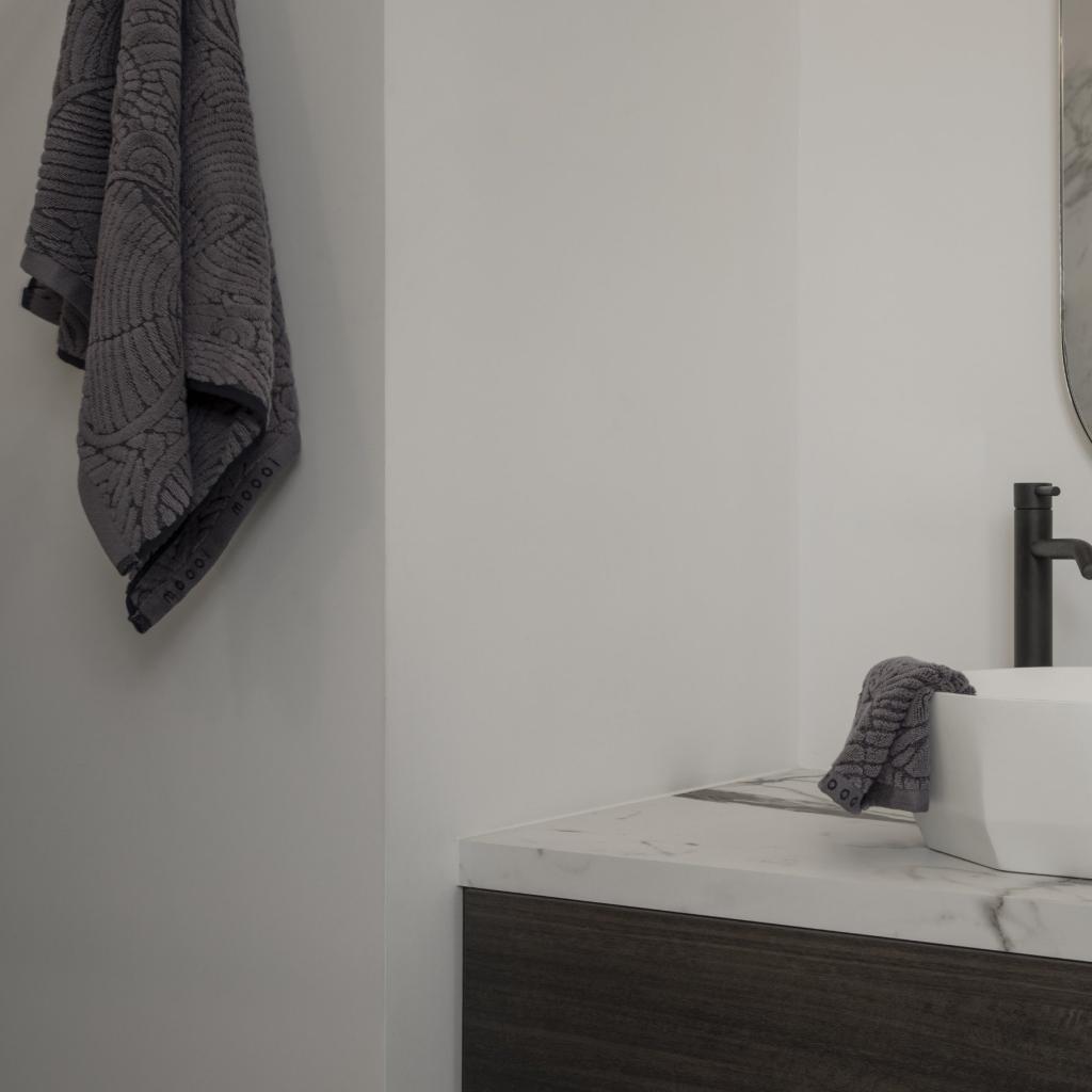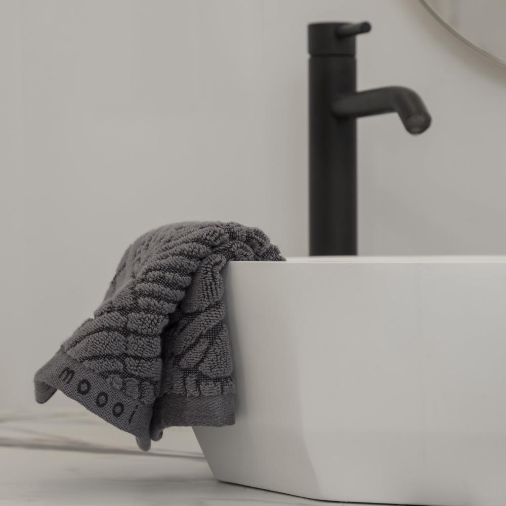 - tmavo šedý uterák na ruky / pre hostí je súčasťou kolekcie Extinct Animals, inšpirovanej vyhynutými zvieratami - v tomto prípade jemným perím vtáka Dodo