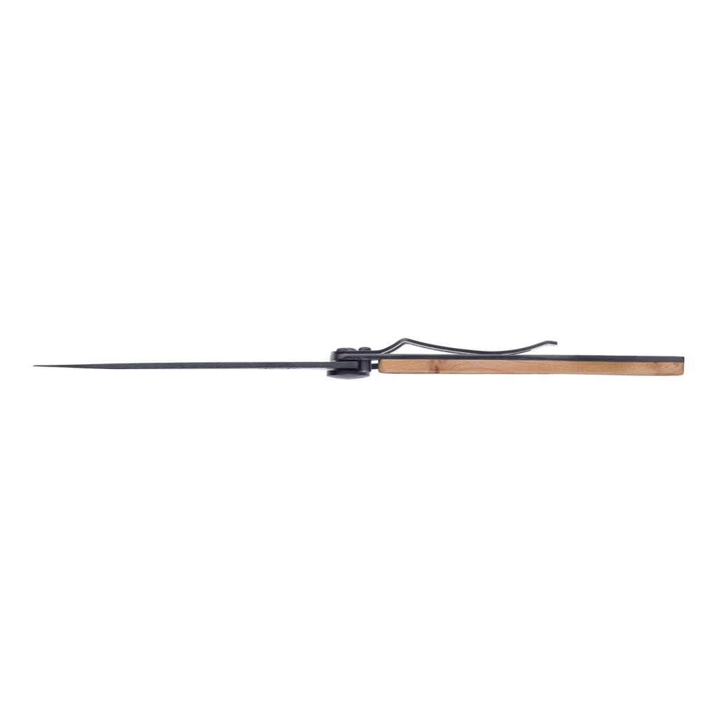 Ultraľahký vreckový nôž z ušľachtilej ocele s čiernym titánovým povrchom, je vybavený bezpečnostnou poistkou liner lock, ktorá zaisťuje bezpečnú manipuláciu aj uloženie noža.Drevená črienka z koreňa odolného borievkového dreva je pevne usadená na rukoväti noža. Francúzska borievka má dlhotrvajúcu jemnú aromatickú vôňu jemného korenia, ktorá pridáva noži charizmu.