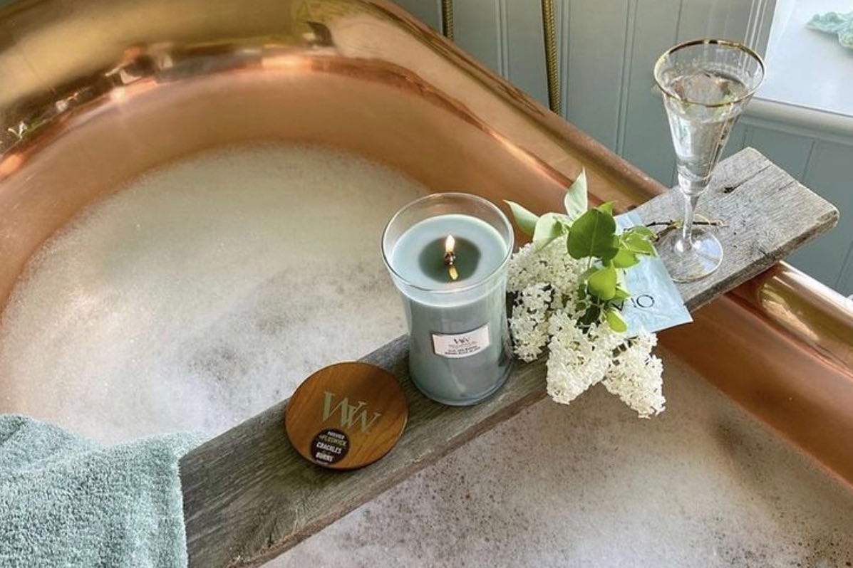 Nie len rýchlu sprchu a ponáhľať sa uložit děti. Zapáľte si vonné sviečky, nalejte si víno a napríklad pokračujte s rozčítanou knihou. Vychutnajte si chvíle úplného uvoľnenia všetkými zmyslami. Aromaterapia posilňuje rovnováhu a harmóniu organizmu po fyzickej aj psychickej stránke. Môžete vyskúšať napr. večernú kompozíciu vonnej sviečky WoodWick Evening Onyx. Jasmín zmierňuje napätie, nepokoj a úzkosť a je prírodným antidepresívom. Santalové drevo a čierna orchidea sú upokojujúce a erotické.